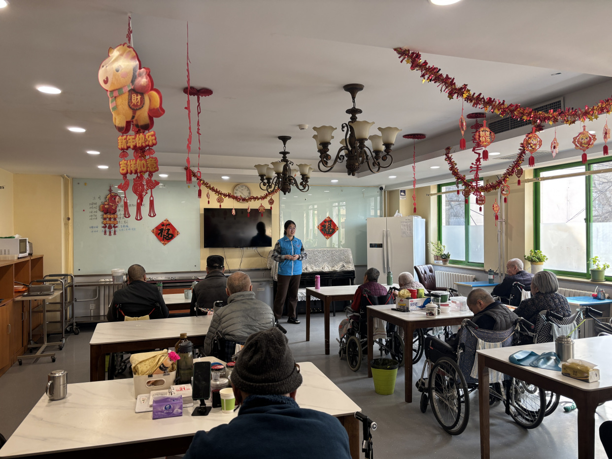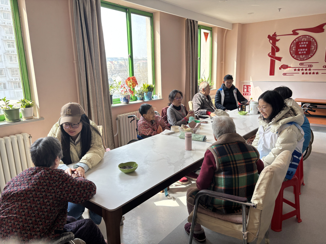 在“青春助老・学雷锋”养老院志愿服务中,中国人民大学志愿者走进天颐养老院,为老人送上暖心陪伴。志愿者与老人闲话家常、演绎文艺节目,还开展拍拍操健康教学,兼顾老人精神与健康需求,以实际行动弘扬尊老敬老美德。