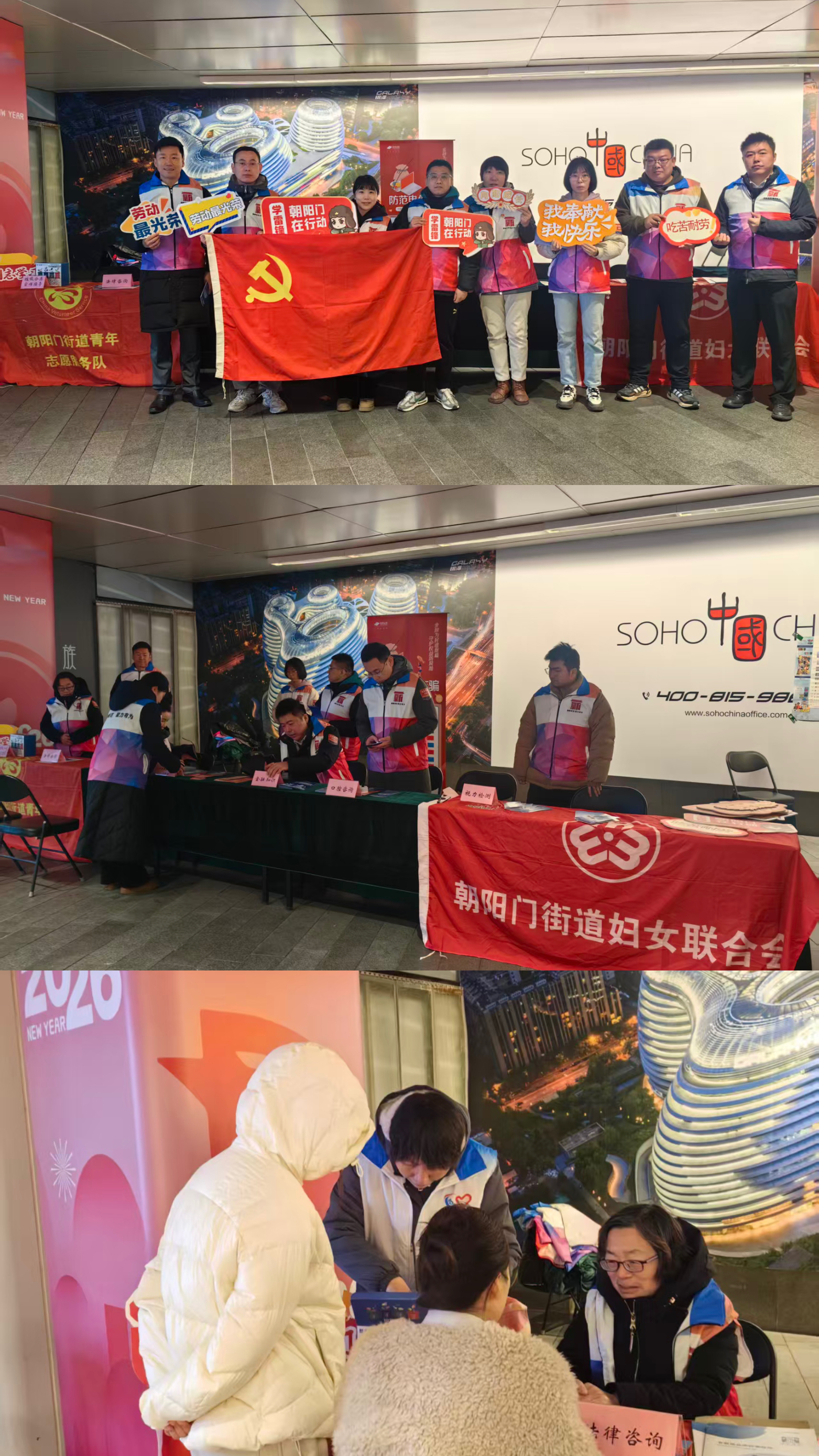 街道团工委联合商务楼宇工作站,在银河SOHO开展“学雷锋・树新风”楼宇便民咨询活动,打造楼宇便民服务圈。邀请公益律师服务队,国信证券、华夏银行、赛德阳光口腔等多家共建单位专业志愿者,提供政策解读、金融反诈、法律答疑、口腔科普等一站式服务。