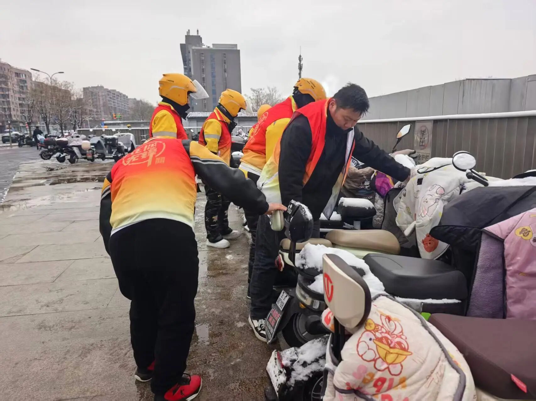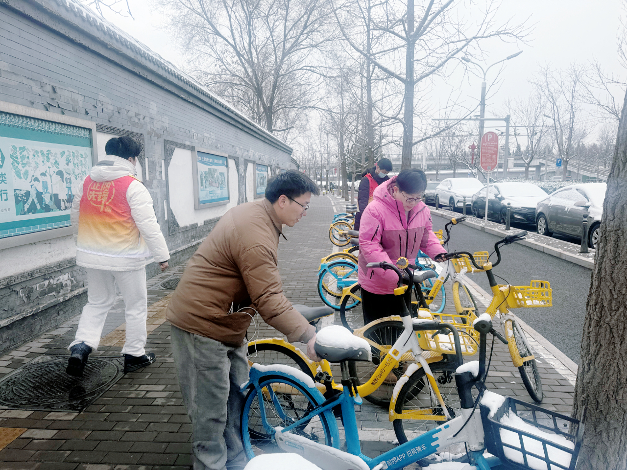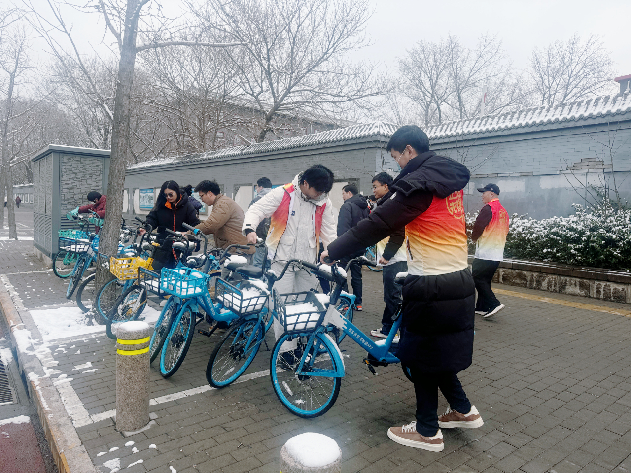 党群服务中心党委立足新就业群体工作特点,为外卖小哥搭建“随手做、就近干、碎片化”的志愿服务平台。3月5日,10名美团骑手利用晨会后的时间,对地铁口周边乱停乱放的非机动车进行有序摆放。