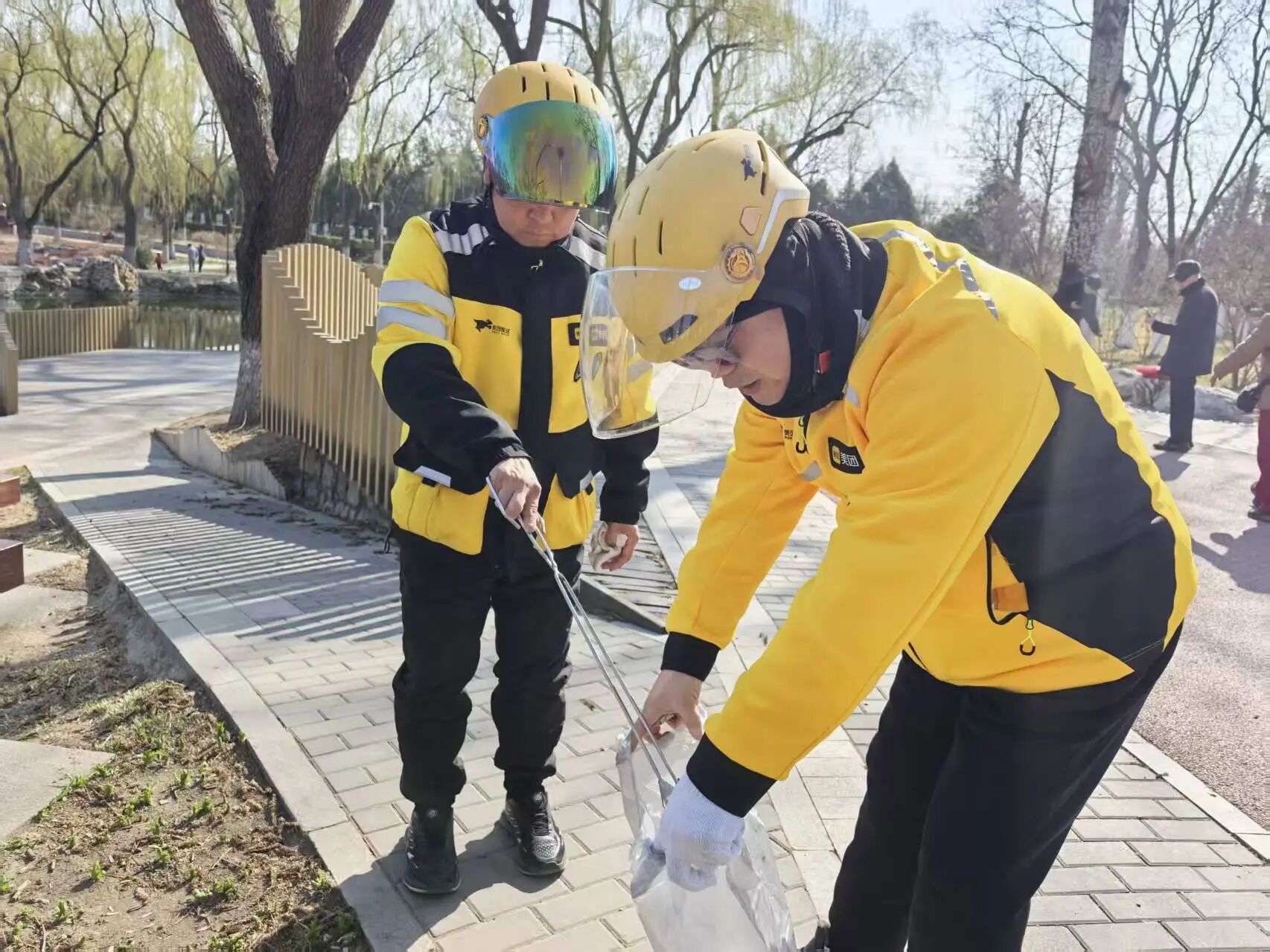 3月20日,富洋工贸商务楼宇党总支走进龙潭西湖公园,开展“守护绿色家园 践行文明新风”志愿服务,党员、入党积极分子与外卖小哥携手对公园道路、绿化带、湖边等区域进行垃圾清理,并开展垃圾分类宣传教育,在生态环保实践中强化党员教育,引导党员在服务奉献中锤炼党性、弘扬文明新风。