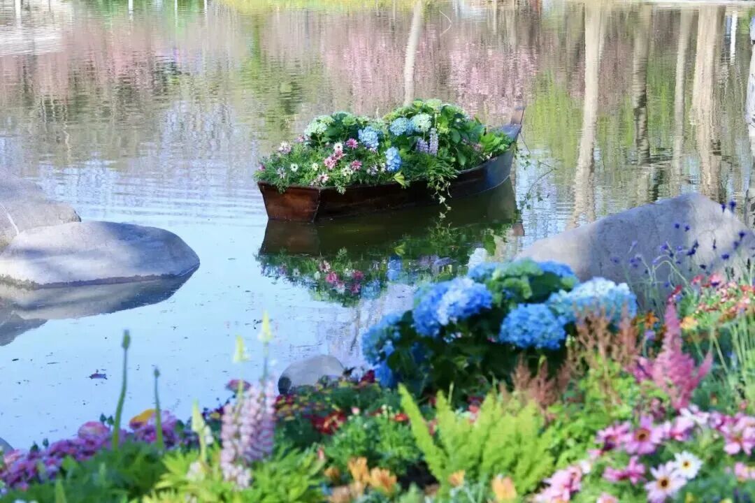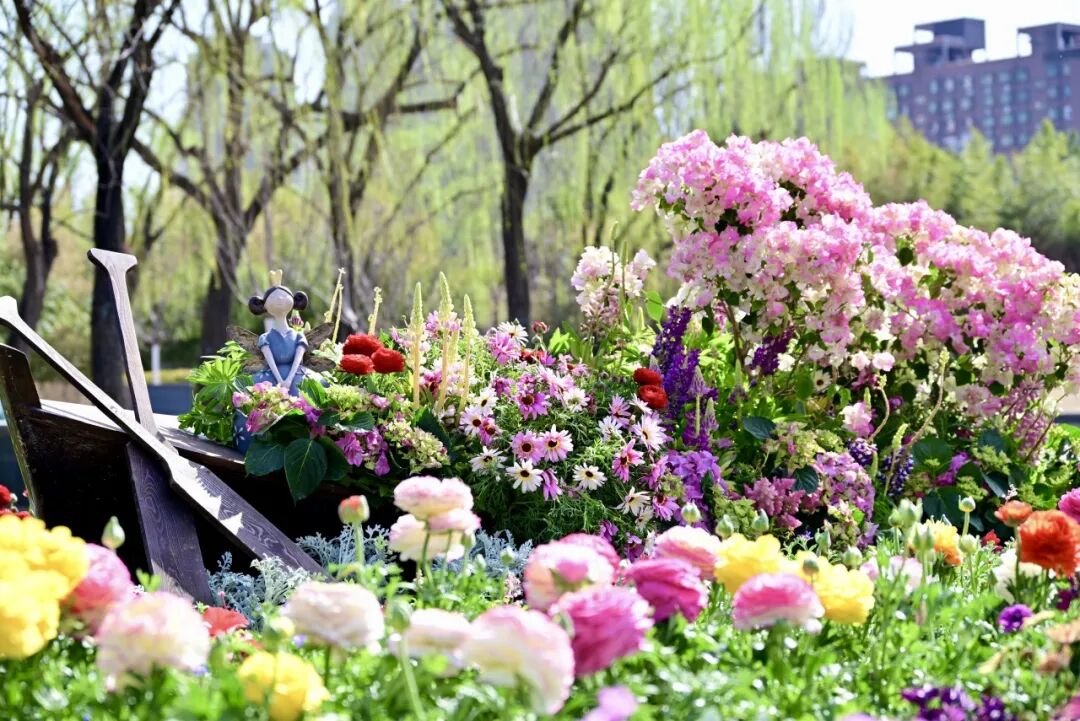 公园还增设了5条主题静赏花船,为北京朝阳花园节暨醒春启航活动注入了全新的魅力。5条花船以郁金香、绣球、三角梅、羽扇豆等花卉为核心设计元素,融合浪漫、童趣等多元风格,造型别致、色彩绚丽。花船以静态方式错落停泊于北小河中心湖区及水岸间,游客可在岸边近距离打卡拍照,沉浸式感受水岸樱花与花船造景结合的独特浪漫。