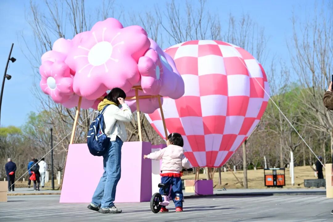 樱花谷内首次推出“樱花热浪”打卡景观,三组大小错落、层次分明的樱花主题热气球,形成极具视觉冲击力的景观矩阵,营造出童话般的浪漫氛围;