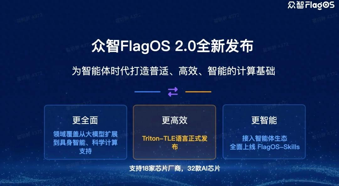 大模型开启了AI时代,而智能体正在重构现实世界。当AI从"生成回答"走向"持续感知、规划、执行任务",对底层计算基础设施提出了全新挑战:没有普适计算,智能体难以跨芯片、跨场景、跨平台运行;没有高效计算,智能体难以进入政府、工业、金融、机器人等关键领域;没有开放计算,AI生态将被单一路径锁定,难以形成真正繁荣的产业体系。众智FlagOS2.0作为面向多元AI芯片的统一开源系统软件栈重大升级版本,实现八大核心技术突破,成为智能体时代的核心智算基座。