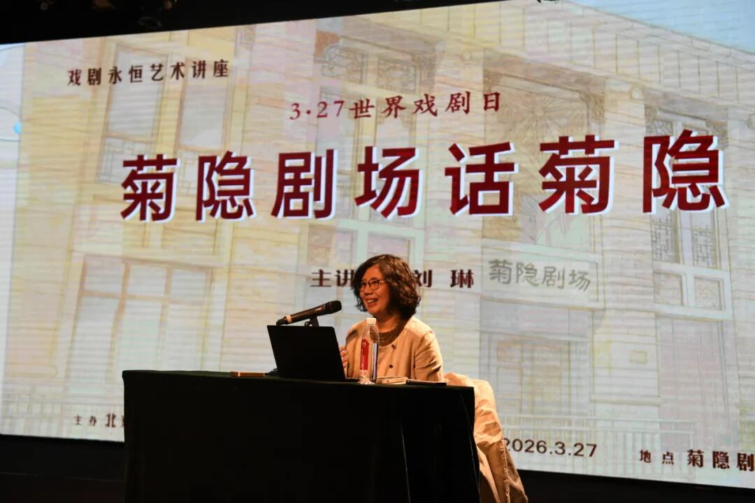 下午14:30,戏剧永恒艺术讲座“菊隐剧场话菊隐”如期开讲。北京人艺戏剧博物馆研究馆员刘琳结合多年院史研究经历,为现场百余名观众生动还原了北京人艺在创立初期的历史瞬间,全面回顾了焦菊隐先生在文学、翻译、戏剧教育等多方面的成就及其导演思想与艺术风骨,在世界戏剧日这一特殊节点,诠释了戏剧艺术的永恒魅力。