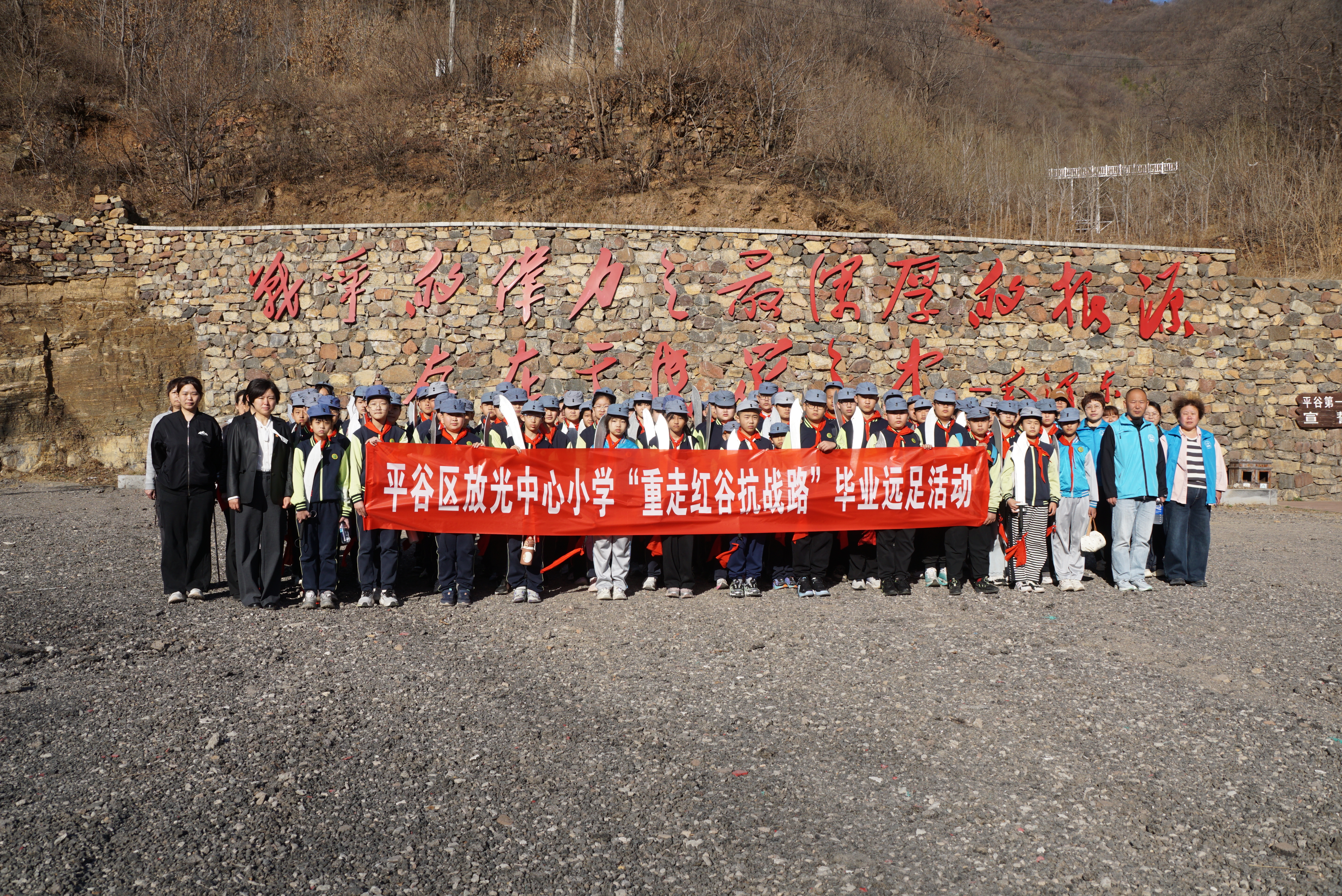 3月27日,北京市平谷区放光中心小学在红谷教育基地开展“重走红谷抗战路”毕业远足活动,全体六年级师生及家长代表参加。活动以“徒步+研学+亲子”为特色,践行“健康第一”教育理念,推动思政教育从课堂走向实景、从理论走向互动,助力学生厚植爱国情怀,锤炼责任担当,同时增强体质、收获成长。
