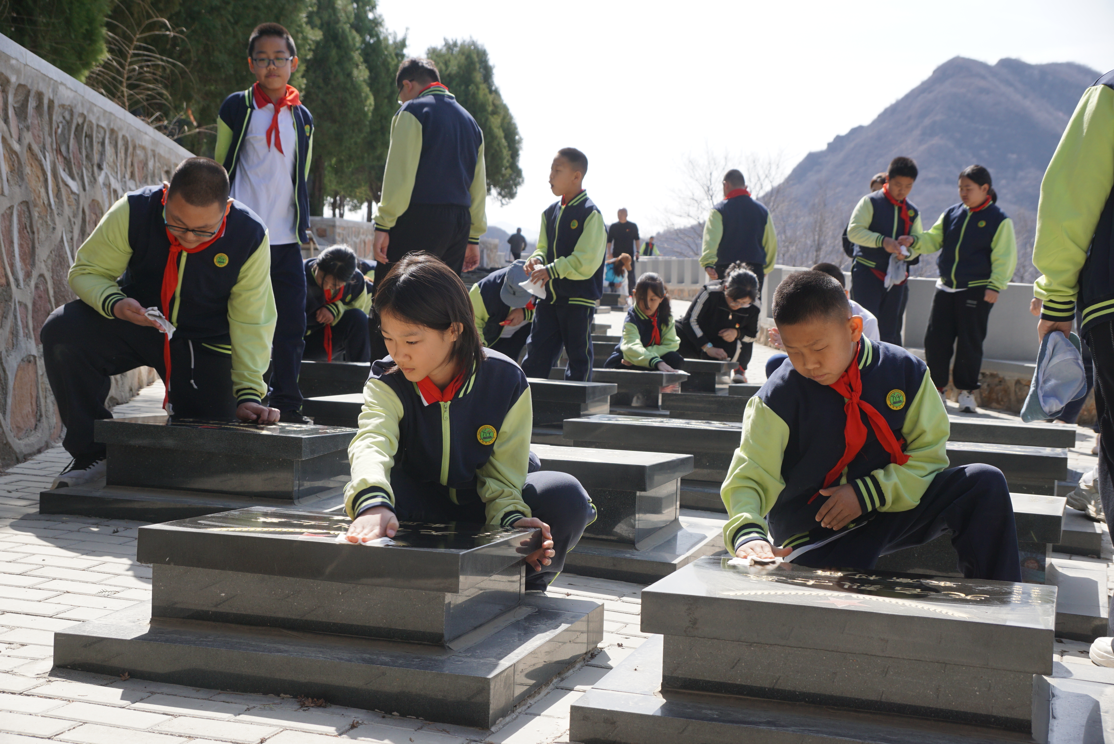 在纪念广场,全体人员共同擦拭烈士墓碑、缅怀革命先烈,让红色基因代代相传,筑牢青少年红色理想信念。“擦拭墓碑的那一刻,心里满是崇敬与感动。”六年级3班学生申佳艺感慨道,“是先烈用生命换来如今的和平美好,我会永远铭记他们的事迹,传承红色精神。”参与活动的家长也深受触动,六年级学生家长孙恩熙说:“陪着孩子一起研学、擦拭烈士墓碑,看到他认真肃穆的模样,我内心十分动容。实景研学比单纯讲述红色故事更有感染力,既让孩子真切感受革命精神,也让我们家长接受了一次红色教育,更体会到家校携手育人的重要意义。”
