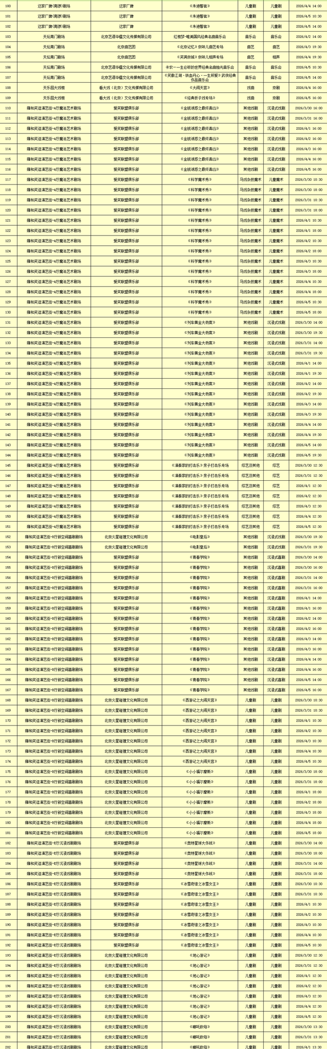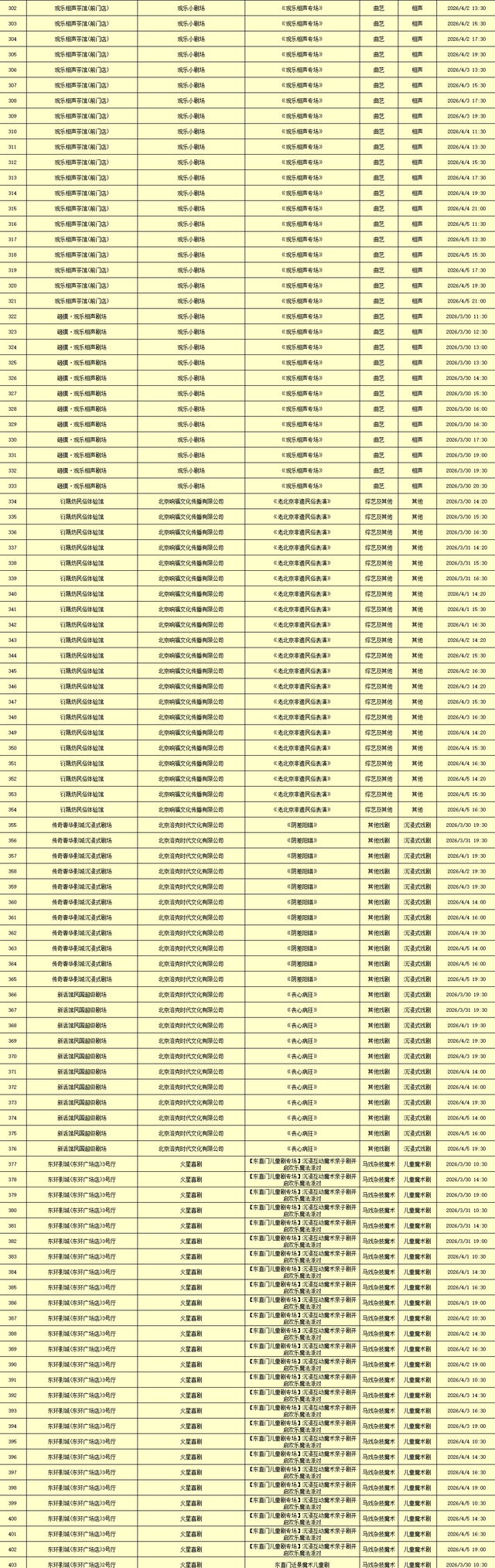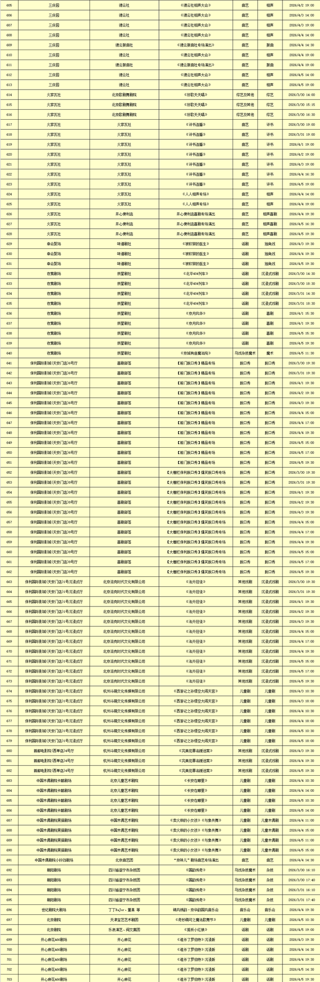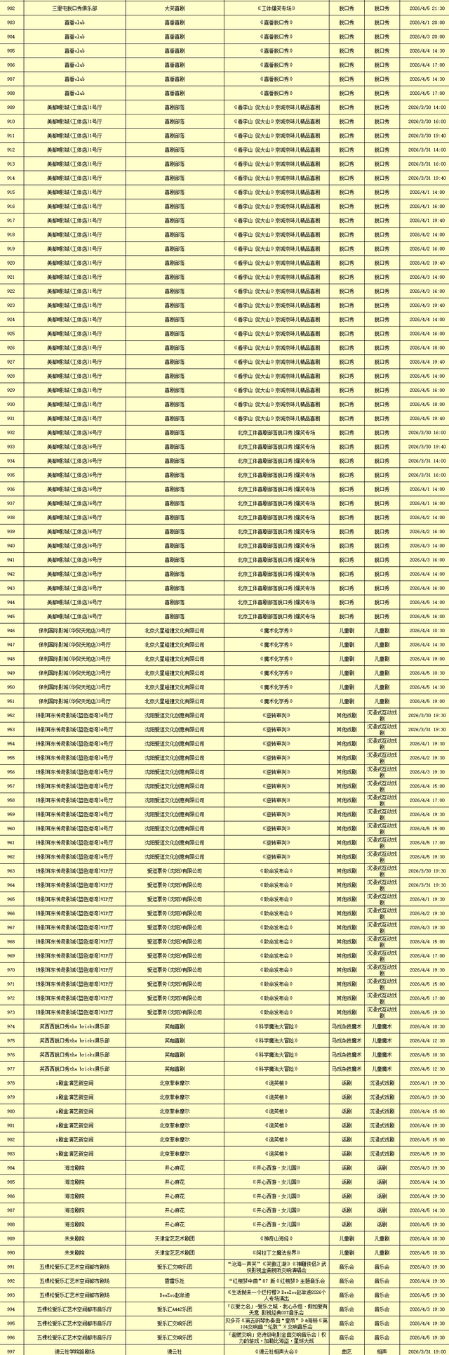 2026年3月30日-2026年4月5日北京商业演出信息新鲜“出炉”!话剧、喜剧、京剧、昆曲、北京曲剧、音乐剧、儿童舞台剧、儿童亲子剧、儿童木偶剧、儿童音乐剧、儿童剧、儿童魔术剧、儿童杂技、沉浸式戏剧、沉浸式喜剧、音乐会、演唱会、Livehouse、芭蕾舞剧、相声、评书、鼓曲、曲艺、二人转、脱口秀、综艺、杂技等一大波精彩演出来了,你想看的全都有,安排起来!(演出信息可能发生变化,以实际演出情况为准)