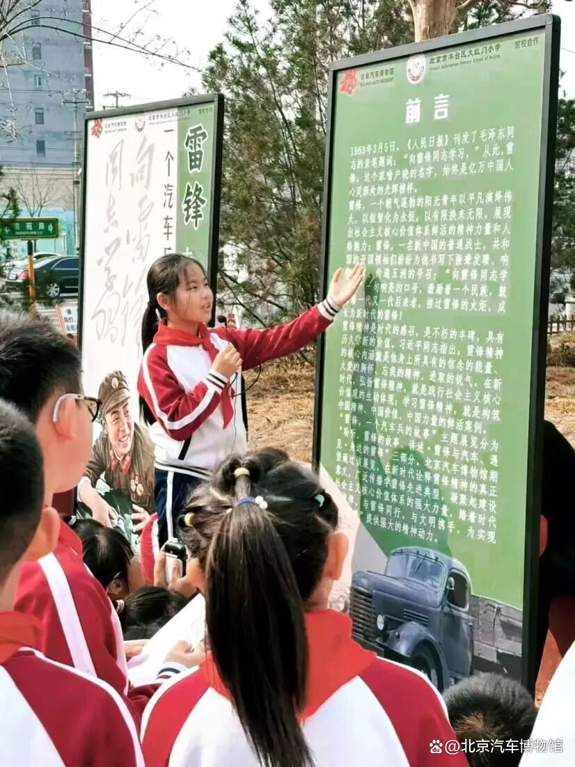 春风送暖,薪火相传。为深入弘扬雷锋精神,传承志愿服务精神,北京汽车博物馆携手大红门小学,走进红门霞栖乐学公园,开展“雷锋-一个汽车兵的故事”志愿宣讲主题活动。本次活动依托北京汽车博物馆推出的“移动汽博馆”项目,走出场馆、走进校园、走进乐学公园,以“小手拉大手”为纽带,带动家庭、辐射社区,为居民提供鲜活的精神引领,切实践行学校服务社区的社会责任,让雷锋精神在青少年心中、在社区群众之间落地生根、开花结果。