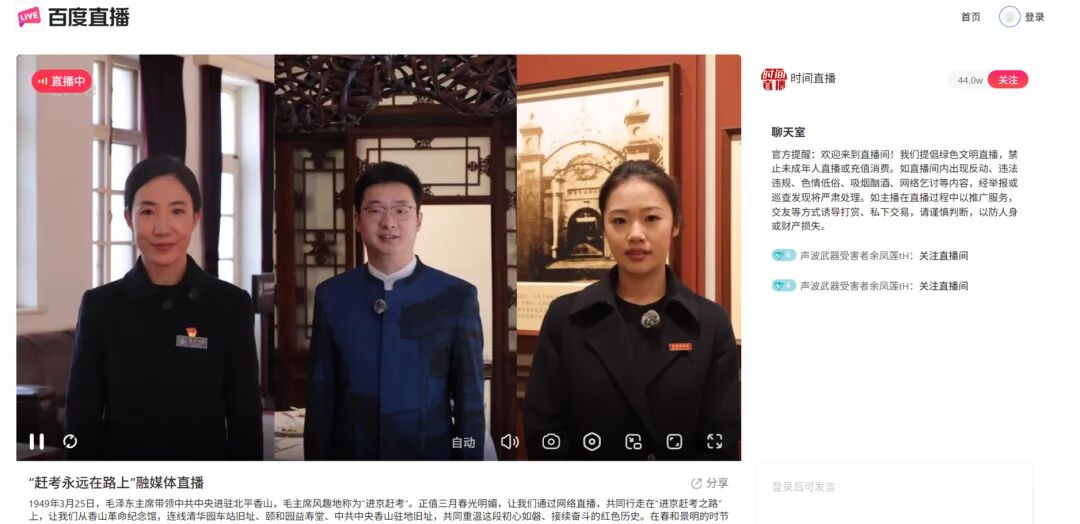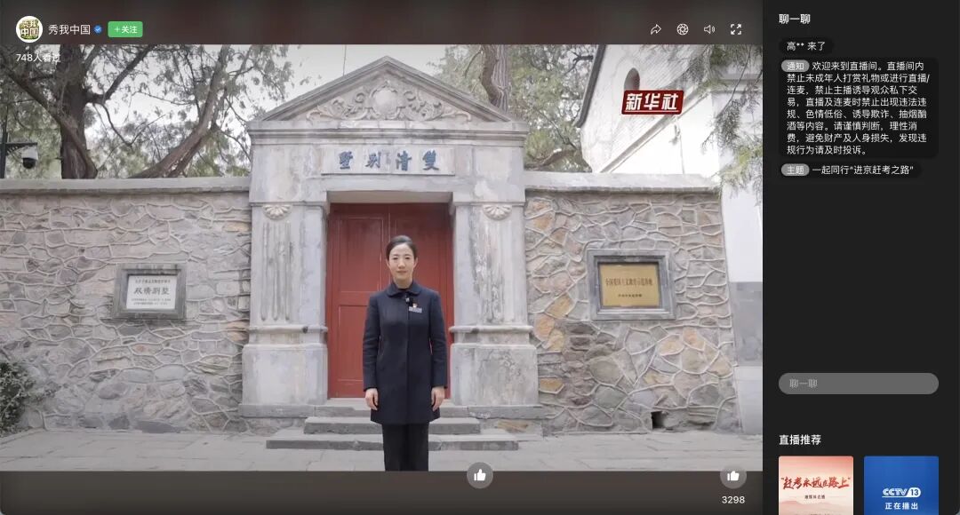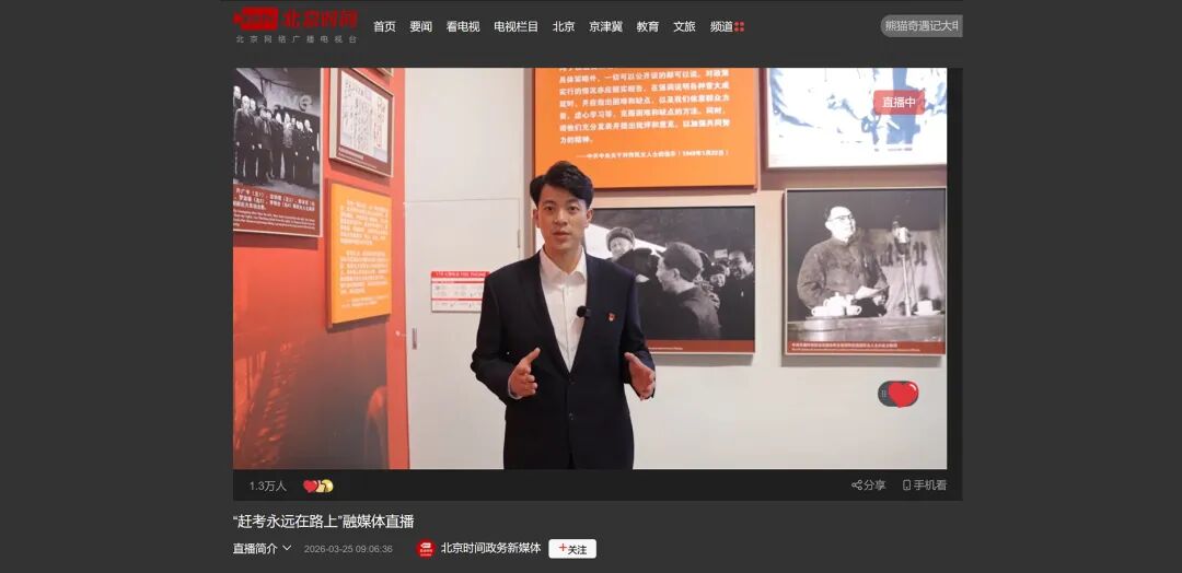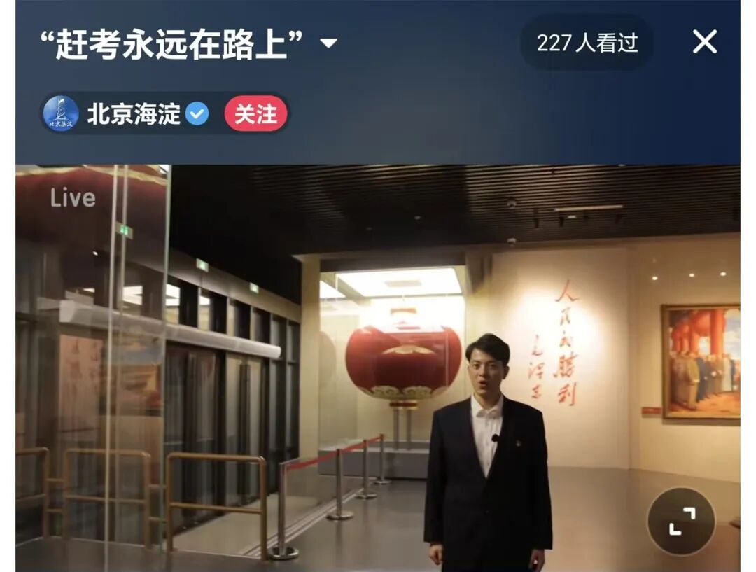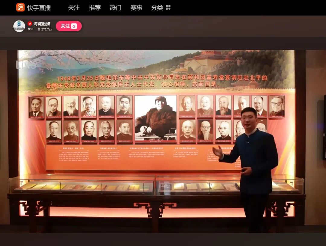 为深入挖掘新中国成立主题片区的历史内涵,生动展现中共中央在香山的革命实践,弘扬“赶考永远在路上”的时代精神,3月25日,香山革命纪念馆联合清华园车站旧址、颐和园益寿堂、中共中央香山驻地旧址(双清别墅)共同举办“赶考永远在路上”融媒体直播活动。此次直播活动采取“主直播间+外景现场”多点联动、实时连线的方式,通过新华社、北京日报、北京时间、海淀区融媒、三山五园艺术中心、香山公园及颐和园等相关单位官方平台联动播出,累计观看量近700万人次,并获市属媒体的广泛报道,进一步推动“赶考”品牌塑造与“赶考”历史立体化传播。