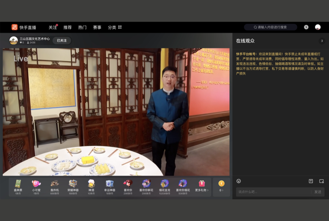▲图为北京市海淀区三山五园文化艺术中心官方账号直播间实况。
