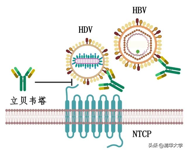 立贝韦塔药物作用机理示意图(HDV: 丁型肝炎病毒;HBV:乙型肝炎病毒)
