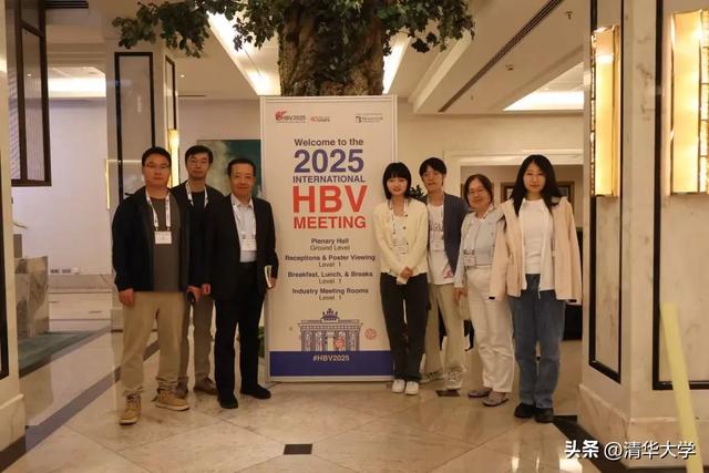 李文辉(左三)与学生在德国柏林参加2025年国际乙型肝炎病毒大会