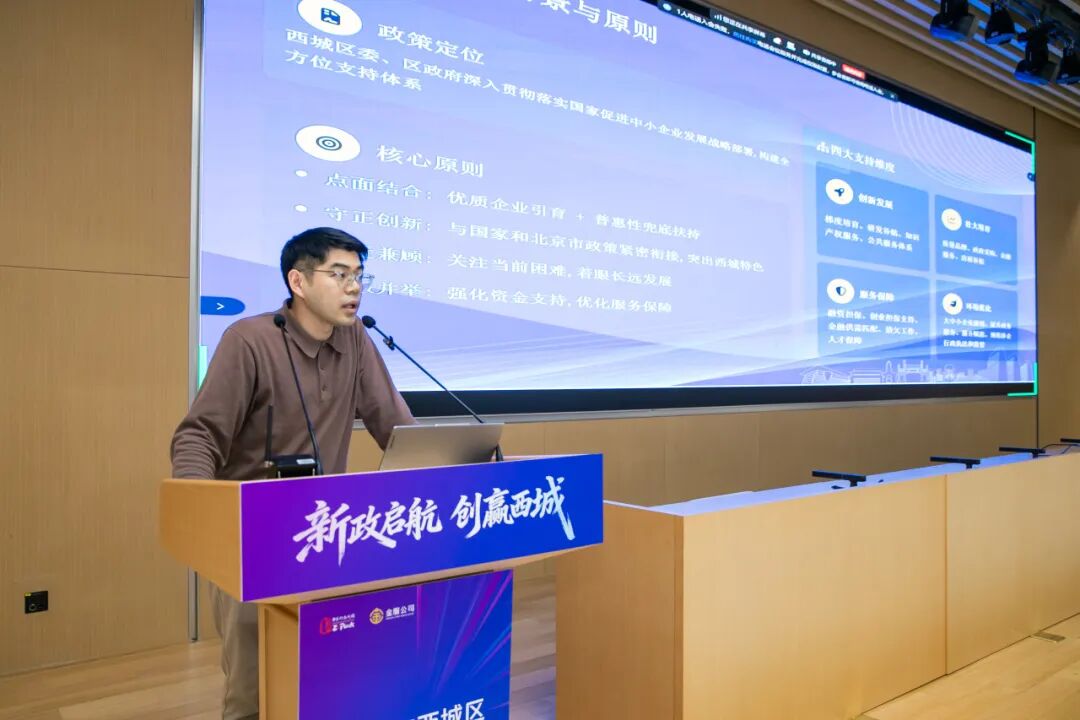 会上,西城园管委会(区科委)、区委宣传部、区经济促进局、区数据局四大核心部门相关负责人依次登台,分别对《北京市西城区促进科技创新及中关村科技园区西城园高质量发展的若干措施》《北京市西城区科技专项项目管理办法》《北京市西城区推动文化产业高质量发展的若干措施》《北京市西城区支持中小微企业高质量发展的若干措施》《北京市西城区促进数据产业高质量发展的若干措施》等政策进行权威解读。