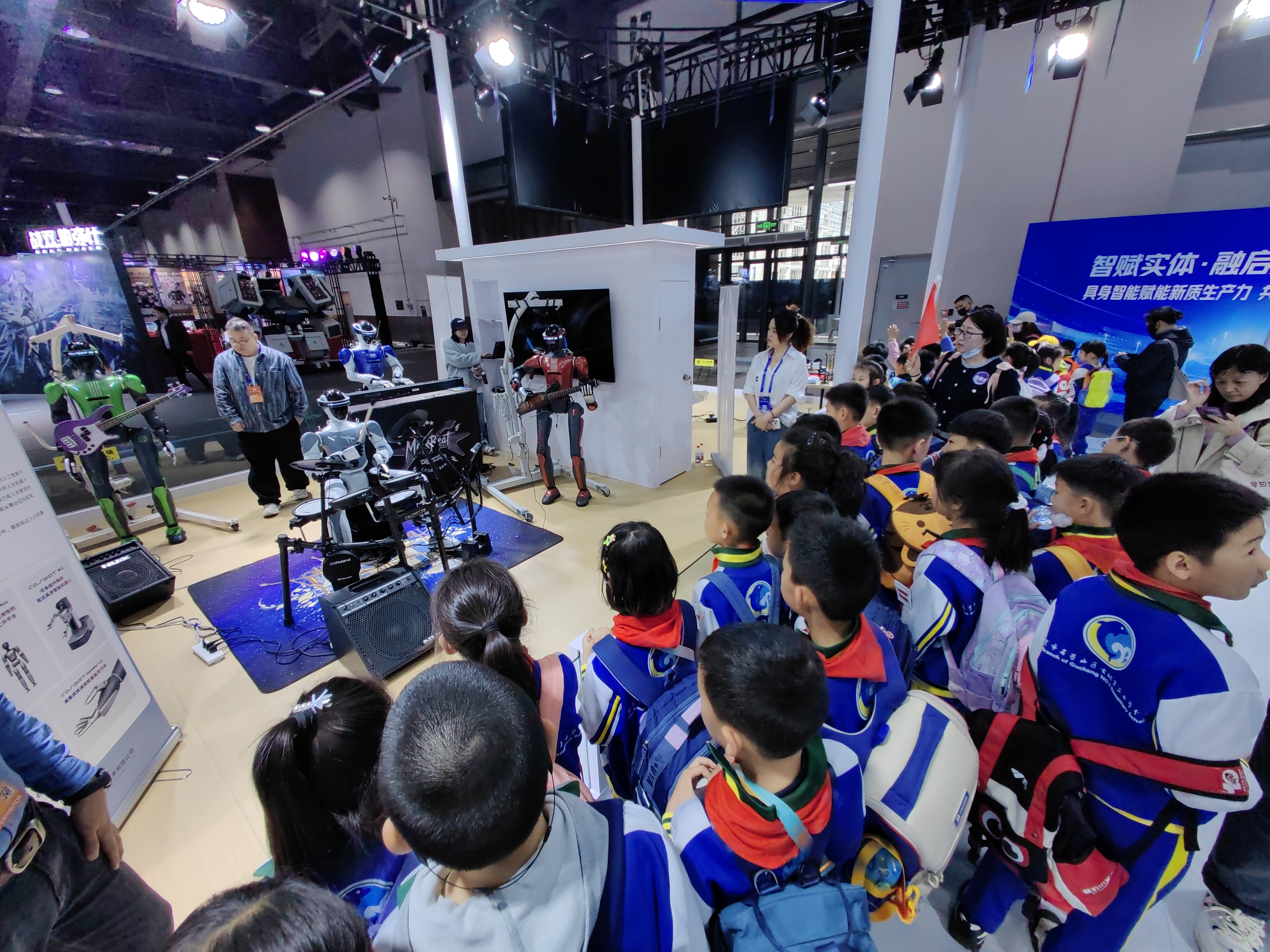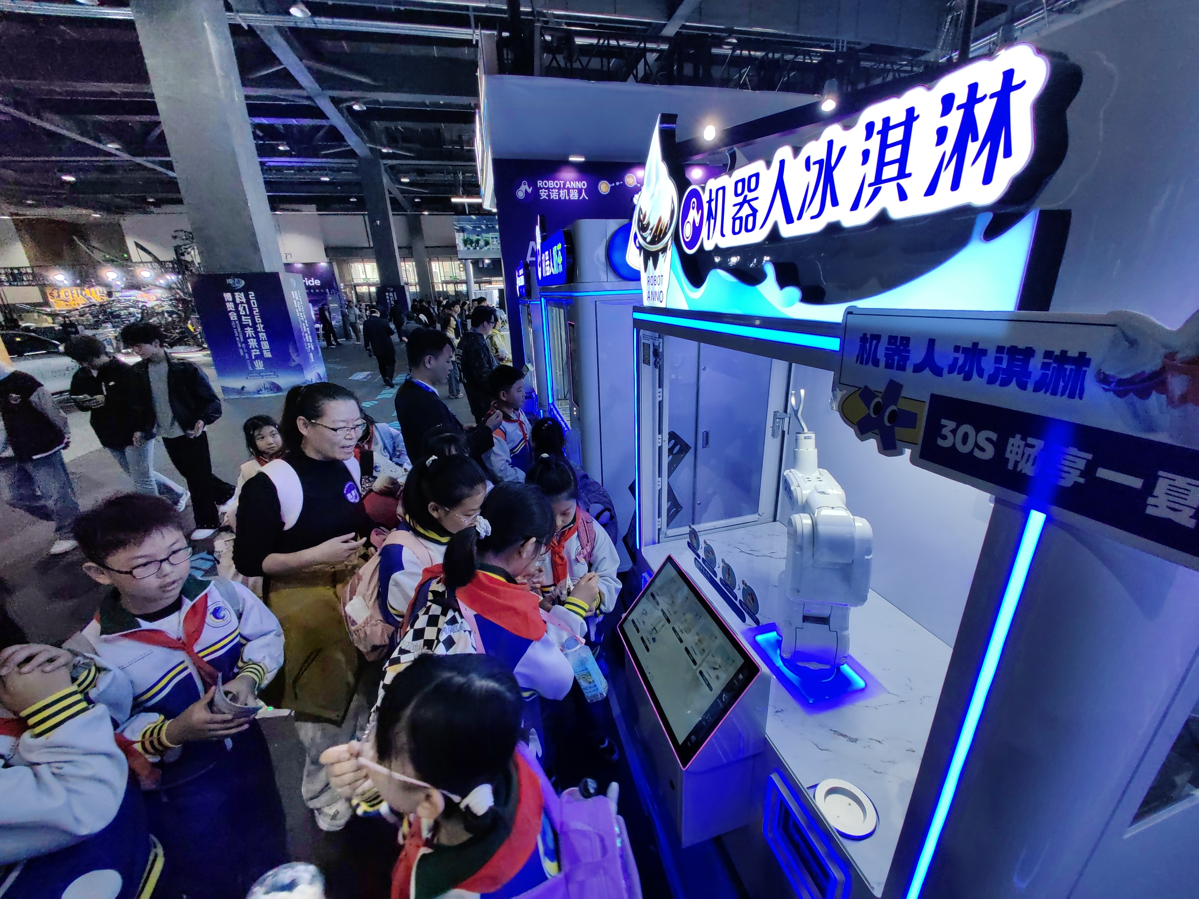 未来人机,汇聚家庭服务、工业协作等各类智能机器人。灵宝CASBOT机器人乐队现场演奏,机器人圣代冰激凌亭提供趣味体验等成为“网红打卡点”。