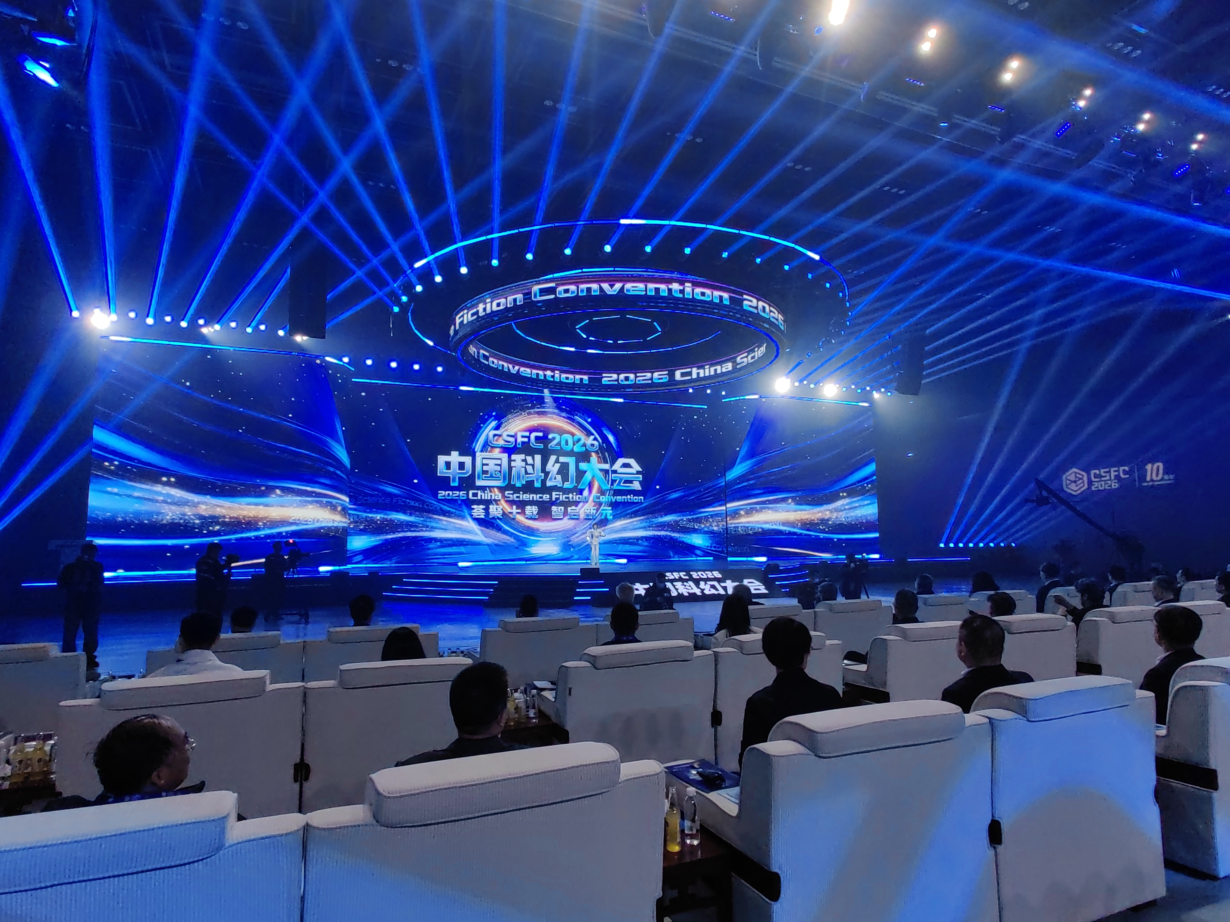未来体验·嘉年华展区汇集全球经典科幻IP衍生品、限量数字藏品、专业电竞设备与沉浸式体验装置。星空科幻微光签到墙、科幻文创周边店、机械艺术装置遍布其中,还有cosplay巡游等活动,满足全年龄段科幻爱好者的消费与互动需求。