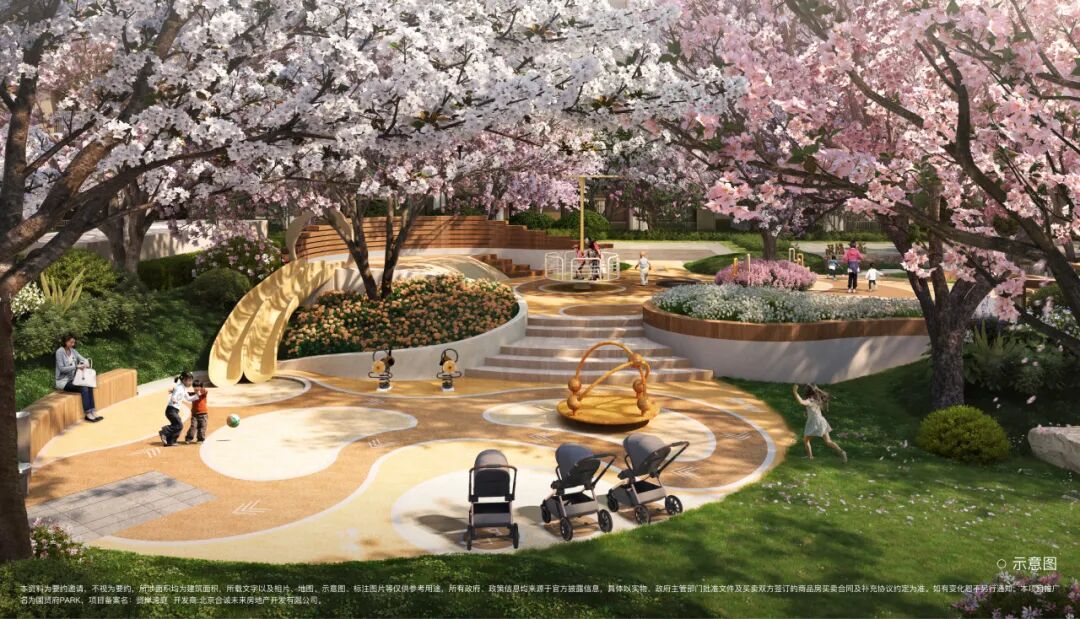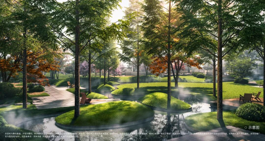 项目以“心游山水、宅园共生、穿园归家、居宅游园”为理念,在社区内围绕湖景园林规划有1600㎡景观水系,以及包含健身房、书咖等在内的全龄泛会所,覆盖社交、办公、休闲需求。