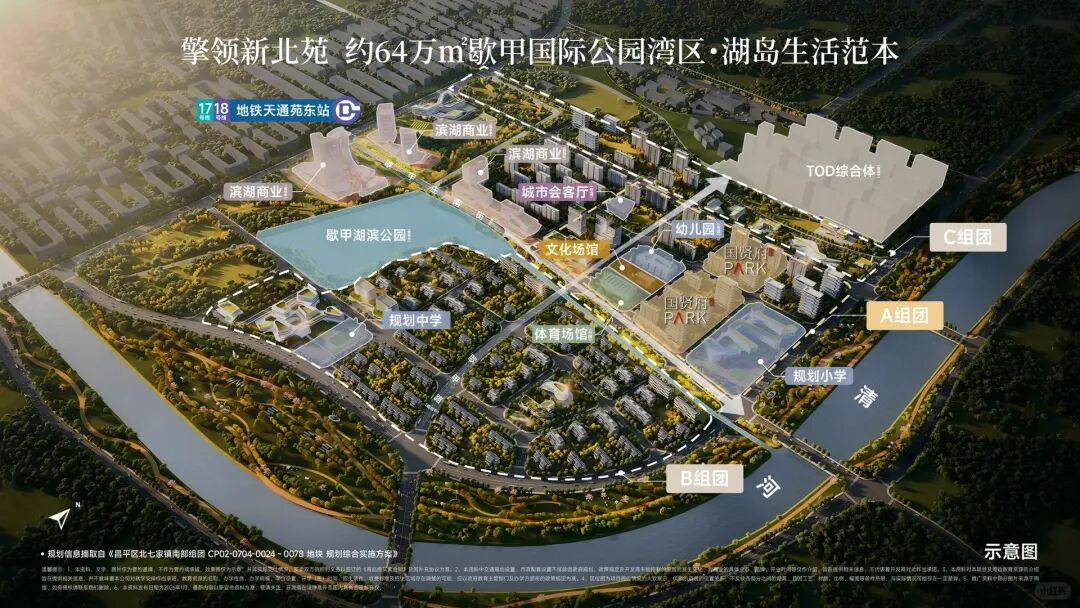 这里自然环境优美,受清河、温榆河双河环抱,板块内规划10万㎡歇甲湾公园(预计2028年底建成)。此外,按照上级规划,该板块将由政企协作共建,依托区域水系打造包含教育、商业、休闲等在内的64万㎡世界级湾区,项目东侧一路之隔将引入清华附属集团校,配建体育场馆、社区会客厅、文化场馆,所有优质配套将与住宅同期建成。