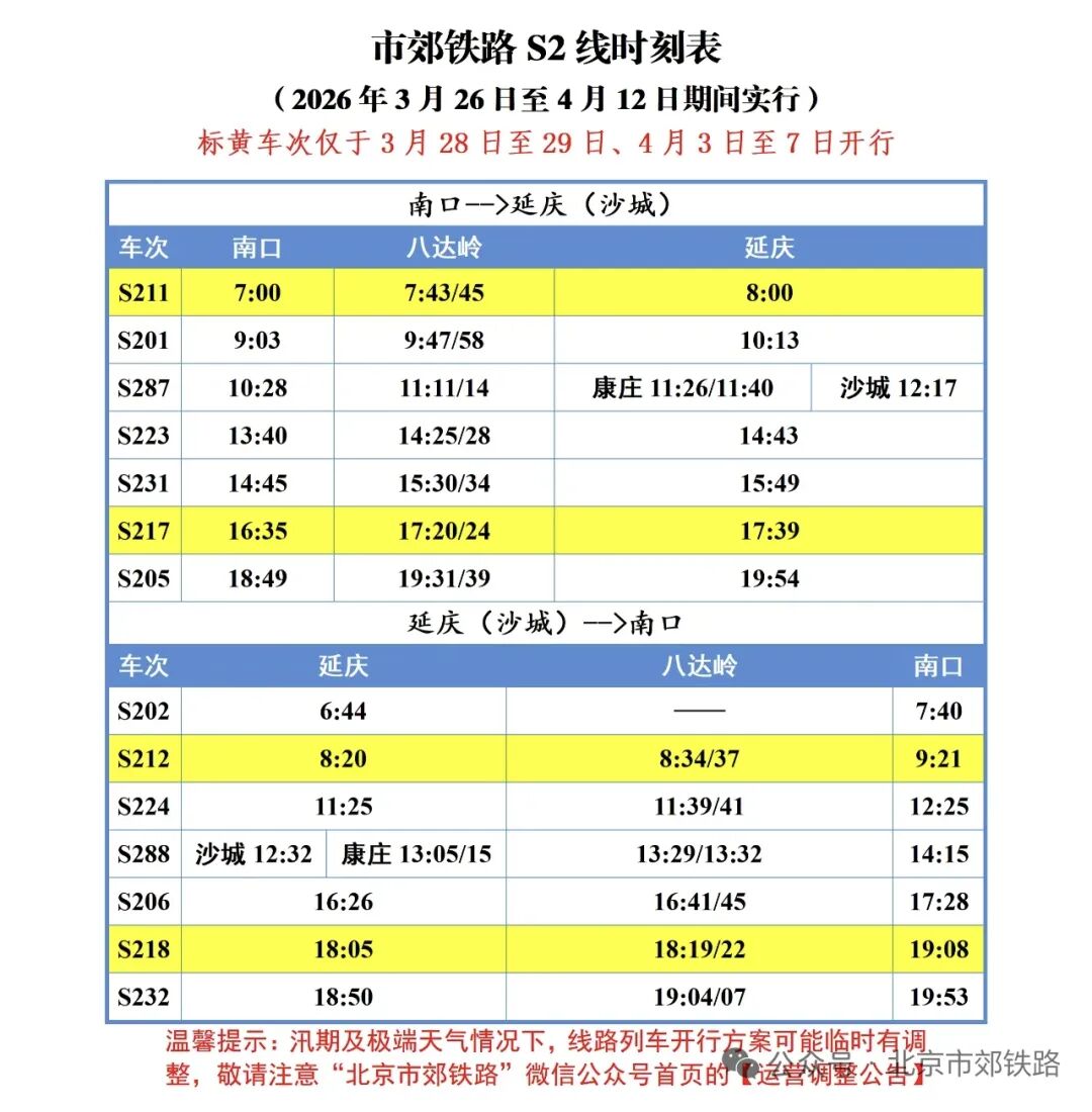 为保障您的出行安全与乘车体验,请提前关注“北京市郊铁路”微信公众号查询车次信息,合理规划出行时间,也可选择返程列车赏花,错峰有序乘车,文明安全出行。