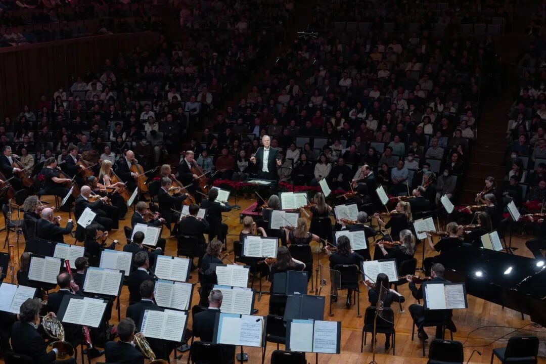 音乐会的旅程自乐团所在地英格兰始——英国环保主义盛行,和大自然有关的作品总会受到青睐与支持。英国女作曲家朱迪思·威尔的《甘雨时至》以音色划分结构,以音响层次构建音乐框架。其乐思高度形象化,密集的上扬式音型扑面而来,带着一股破土而出的蓬勃生机;快速的音阶跑句连绵不绝,伴随着持续的拨弦,描绘着骤雨倾盆而下的灵动与急促,搭配上泛调性的和弦底色,使音乐充满幻想色彩。随着打击乐集体强势亮相,音乐的仪式感骤然提升。BBC交响乐团的打击乐声部表现堪称惊艳,各式打击乐器错落奏响,营造出浓郁的雨林氛围,节奏律动充满原始的生命力,仿佛一场古老而神秘的祈雨仪式,庄重而热烈。打击乐的节奏编排巧妙借鉴了斯特拉文斯基《彼得鲁什卡》的经典节奏型,与音乐会最后的《火鸟组曲》形成奇妙的互文。