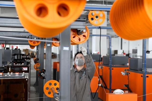 3月27日,在日照市莒县一家企业,工作人员在3D打印线料生产线值守。