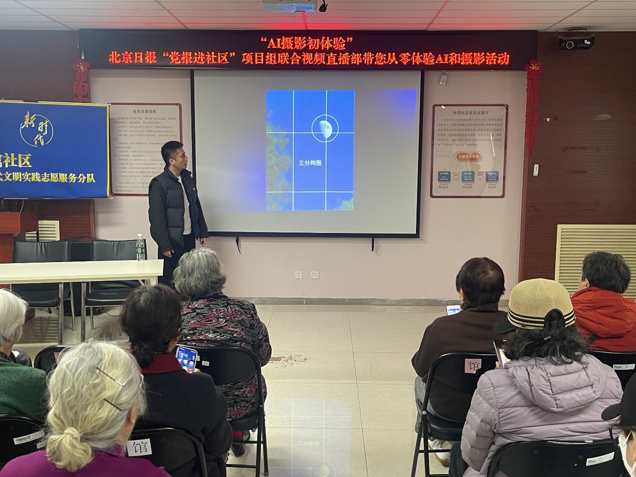 社区书记李军:这次的AI摄影课,精准踩中了我们社区老年居民的核心需求。社区里不少高龄老人对智能设备有顾虑,不敢用、不会用,这次的课程用零门槛的方式,让老人们放下了顾虑,实实在在学会了能用得上的技能。看到大家学得认真、用得开心,我们也很欣慰。接下来社区会继续联动北京日报 “党报进社区” 项目组,开展更多适配老年群体的实用公益活动,让老人们能轻松跟上时代节奏,享受科技带来的便利。