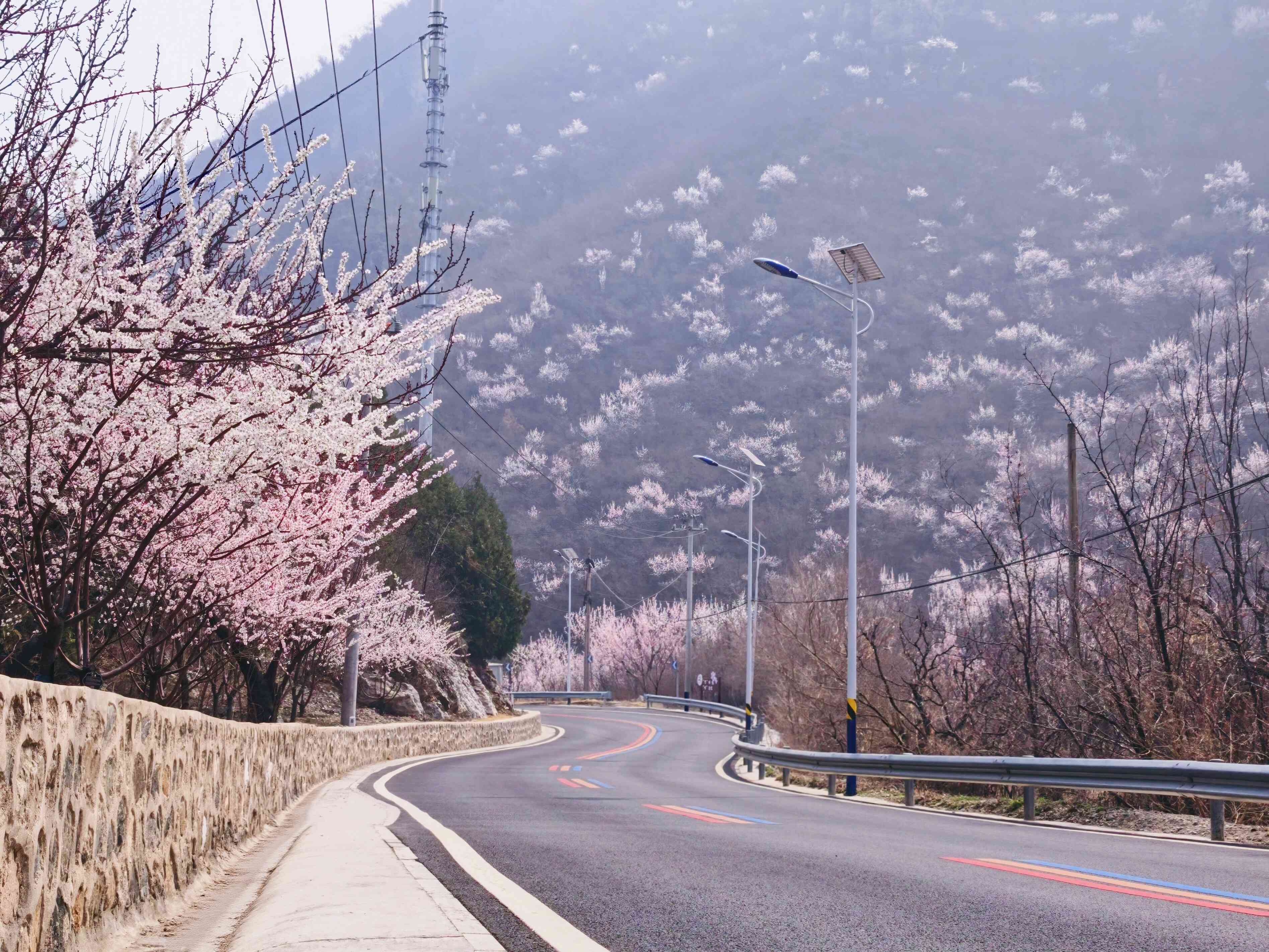 此次西峪村绽放的山花以山桃花为核心品种,同时点缀有少量野杏花,花色以粉嫩的桃红、纯净的洁白为主,深浅交织,层次分明,与山间翠绿的草木相映,勾勒出清新柔美的春日画卷。