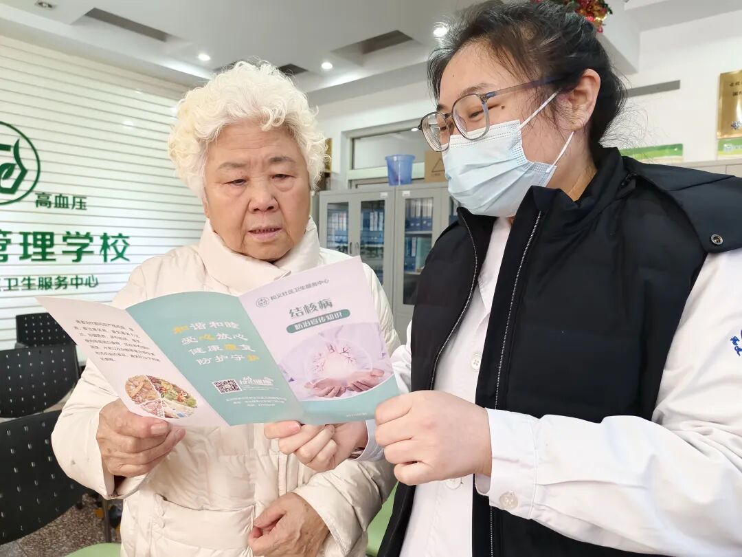 开课当天恰逢“世界防治结核病日”,中心保健科医护人员还对学员进行了结核病相关宣教,左为慢病学员石阿姨。