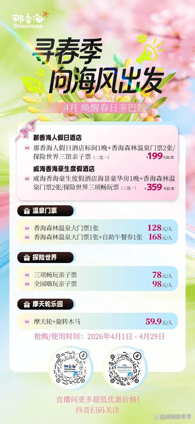 那香海春日限定度假套餐火热预订中。这个春天,赴一场山海之约,把温柔与快乐留在那香海。