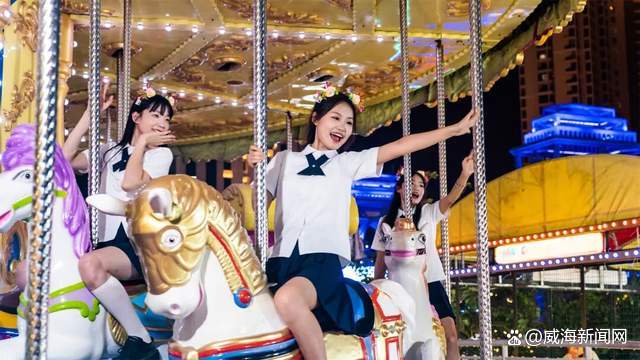 摩天轮升至最高点,可俯瞰天鹅湖、香海花街与英伦蓝桥。旁边还有旋转木马,童话感满满,是情侣约会、家庭打卡必体验的场景。