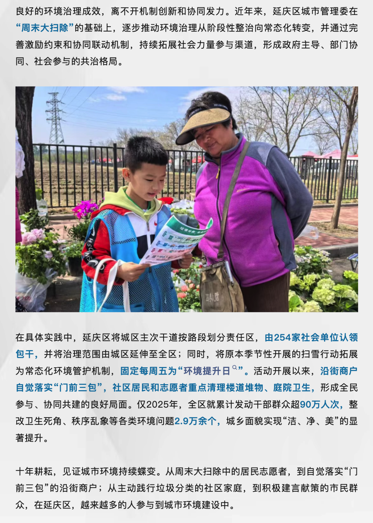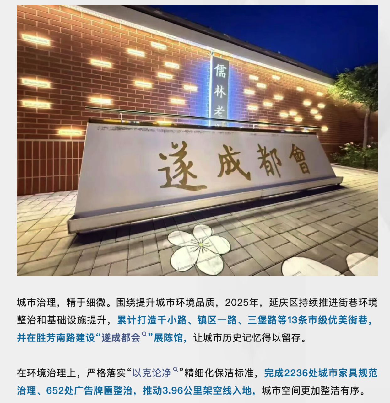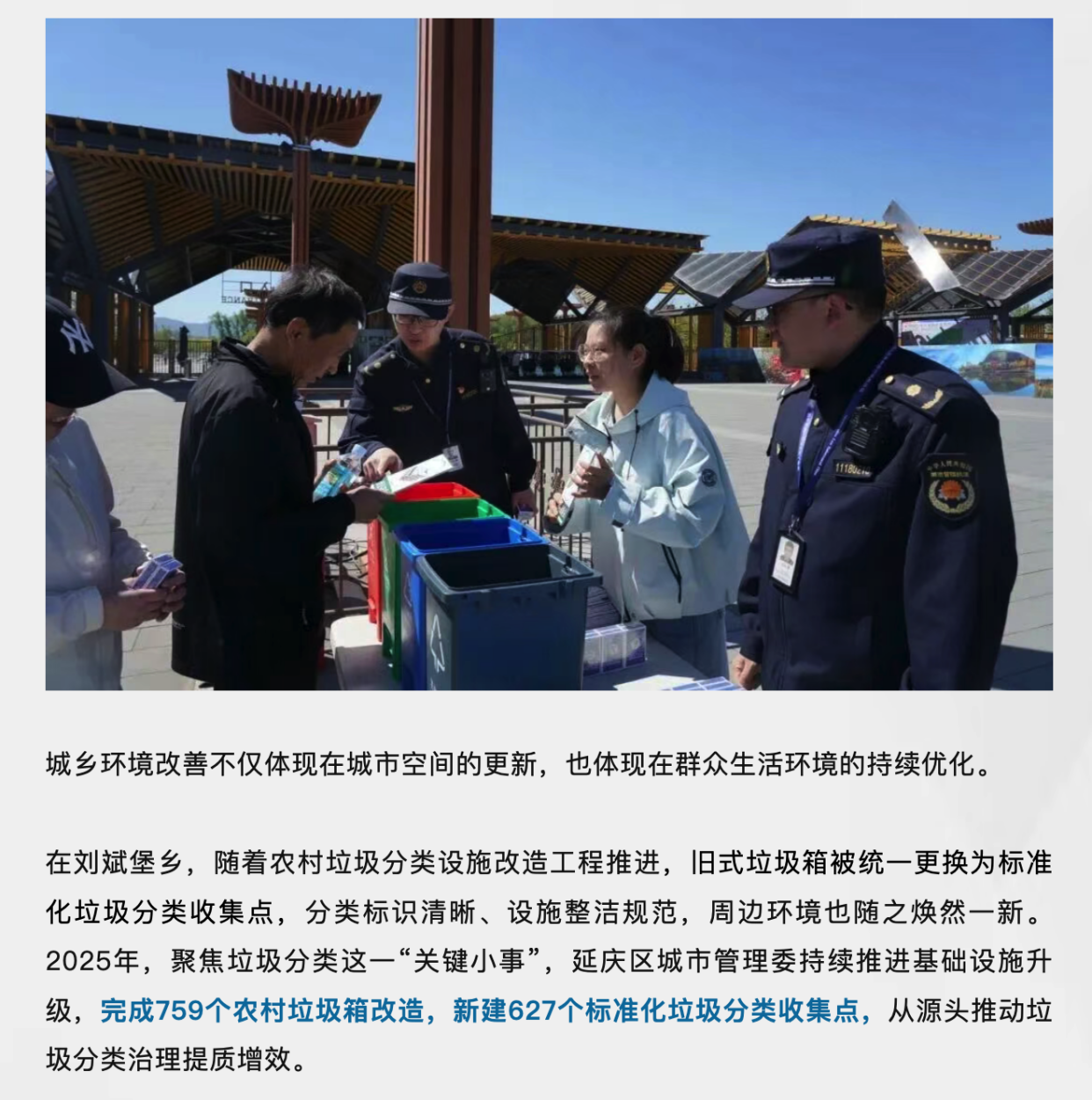 2025年是“十四五”收官之年,延庆区深入践行“人民城市”重要理念,以“绣花”功夫雕琢城市肌理,以精治思维做好环境文章,统筹推进街巷环境整治、垃圾分类治理、违法建设整治等重点工作,多措并举提升城乡环境品质,让群众在家门口感受到实实在在的环境变化。(来源:北京延庆)