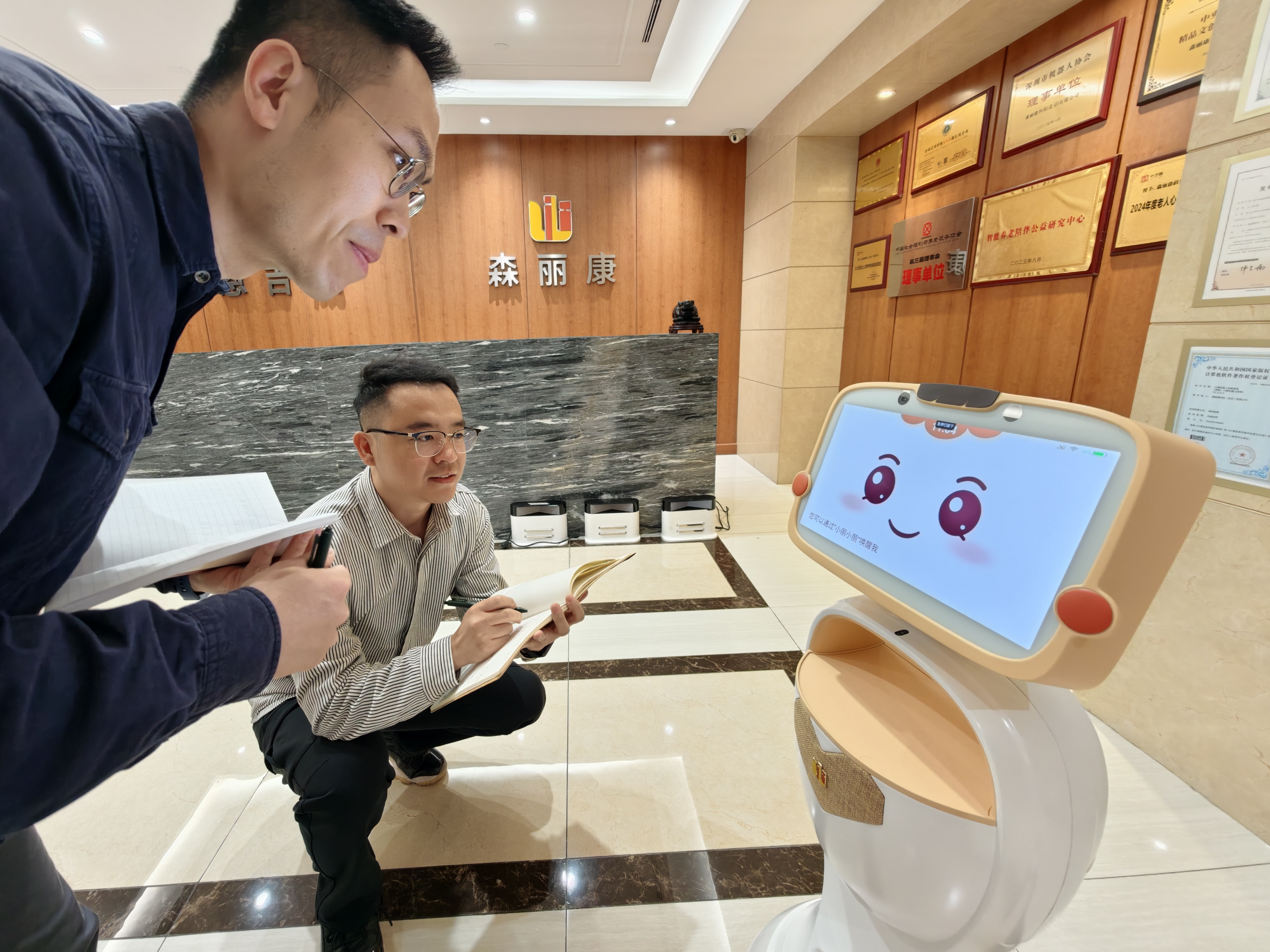 在养老机构里,小丽会按照设定的路线“巡逻”,主动和路过的老人打招呼,还可以记住每一位老人的名字。在居家场景中,这种“主动性”体现得更细腻——到了服药时间,机器人会满屋子找老人提醒吃药;亲友打电话来,它会在房间里找到老人再把电话接通;老人外出归来,它会说“您回来啦,坐下休息会儿”。一位使用“小丽”一年多的老人说,最让她感动的是机器人“满屋子找她”的功能,再也不用担心错过提醒。