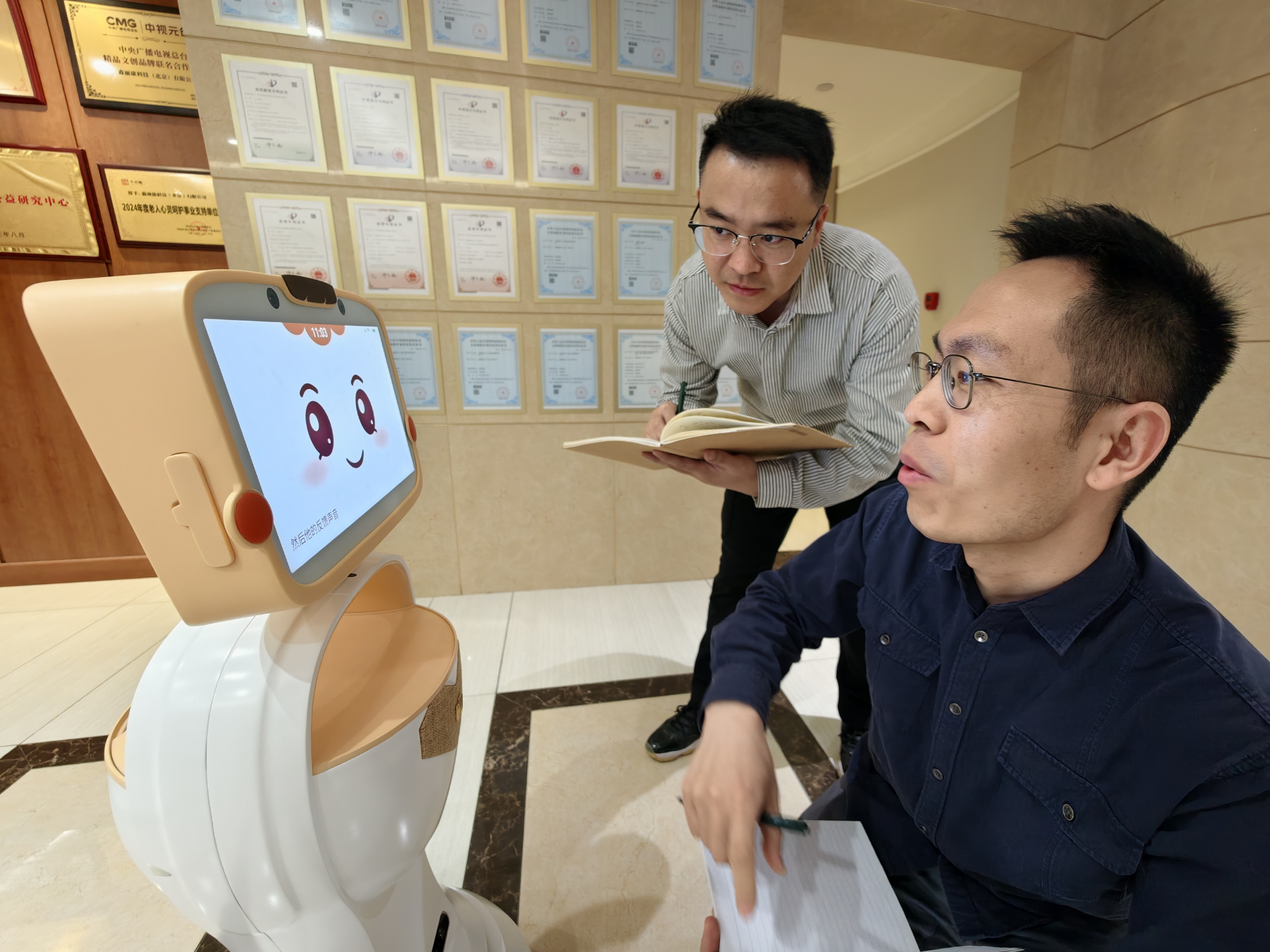 首先是“听懂”。老年人的表达习惯各不相同,早期的机器人只能识别有限的说法,这让很多老人感到困惑。“我们持续做数据泛化,让它更符合老年人的表达习惯。”负责产品完善的技术人员说。目前大模型的数据适合年轻人的居多,老年人的相关数据需要在更多的应用场景中去积累。
