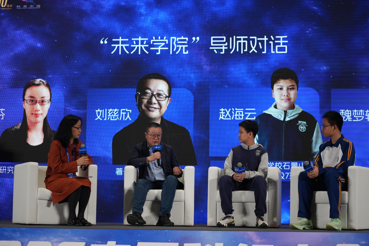 活动当天,在导师对话环节,著名科幻作家刘慈欣作为核心嘉宾,围绕青少年科幻教育、科创思维启蒙等话题与师生深入交流,为青少年科幻梦想指引方向。科幻作家阿缺带来“科幻文学”主题分享,带领师生感受科幻文字的想象力与创造力;机器人艺术家孙世前以“机甲探索启蒙”为题,揭开机甲科技的神秘面纱。大师们的分享兼具专业性与趣味性,让师生在沉浸式体验中收获知识、启迪智慧、点燃科学热情。