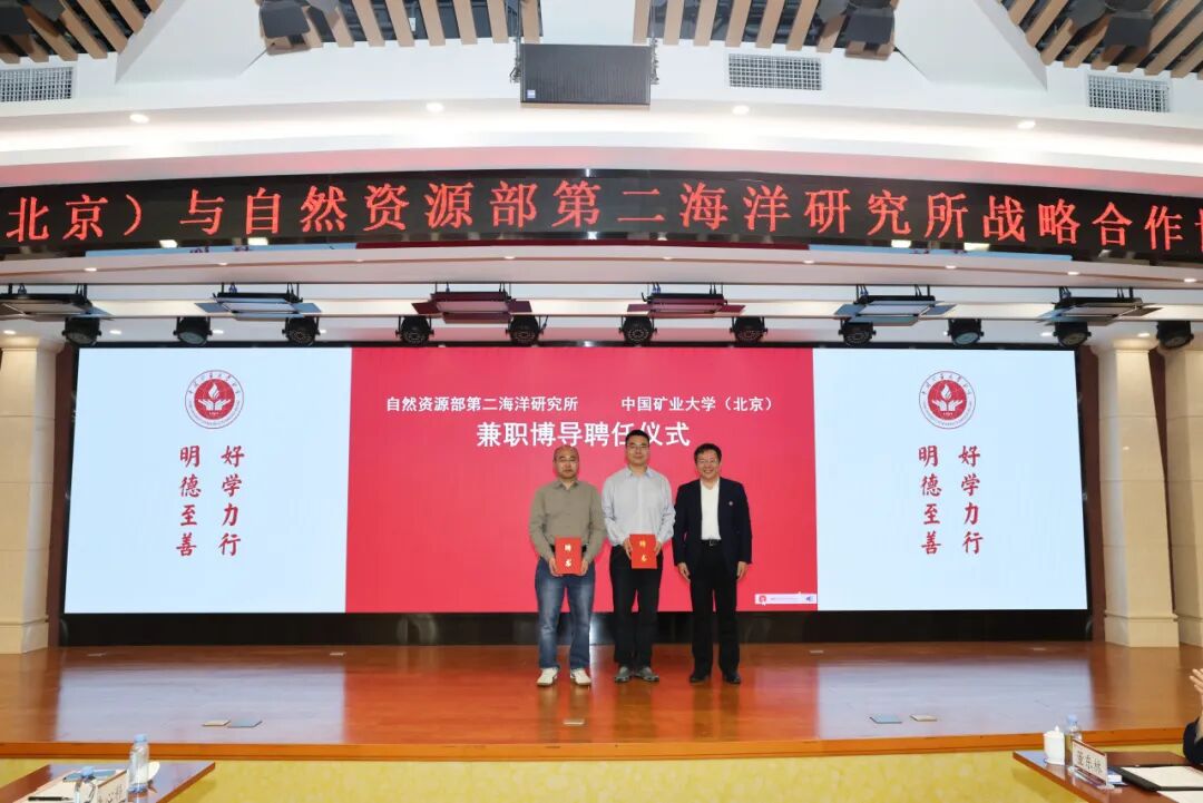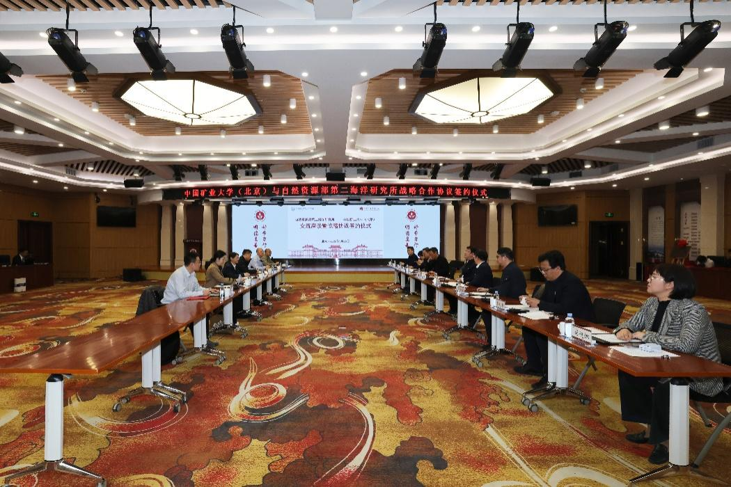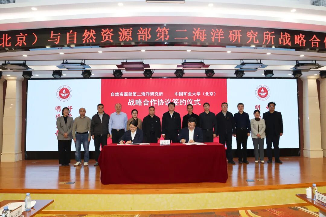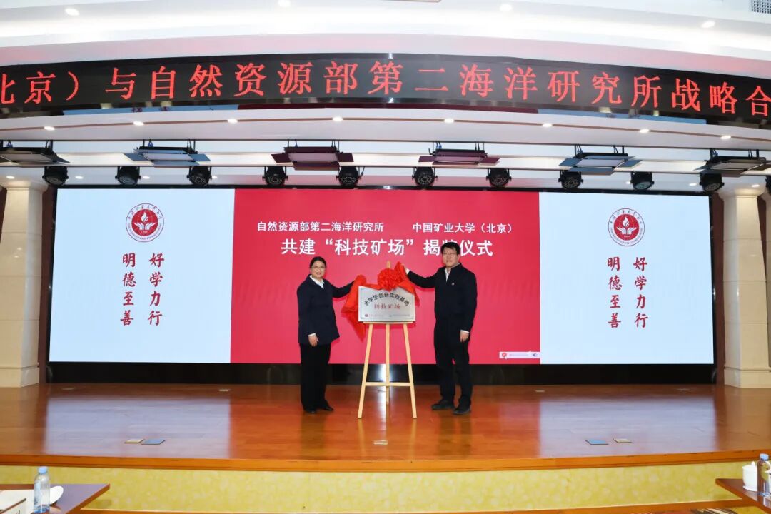 3月26日,中国矿业大学(北京)与自然资源部第二海洋研究所举行战略合作协议签约暨“科技矿场”揭牌仪式。校党委书记韩尚峰、校长刘波与海洋二所所长方银霞围绕深化战略合作交流座谈,共同见证战略合作协议签署、“科技矿场”揭牌及兼职博导聘任。学校副校长崔希民,校长助理阳凡林、赵毅鑫出席活动。