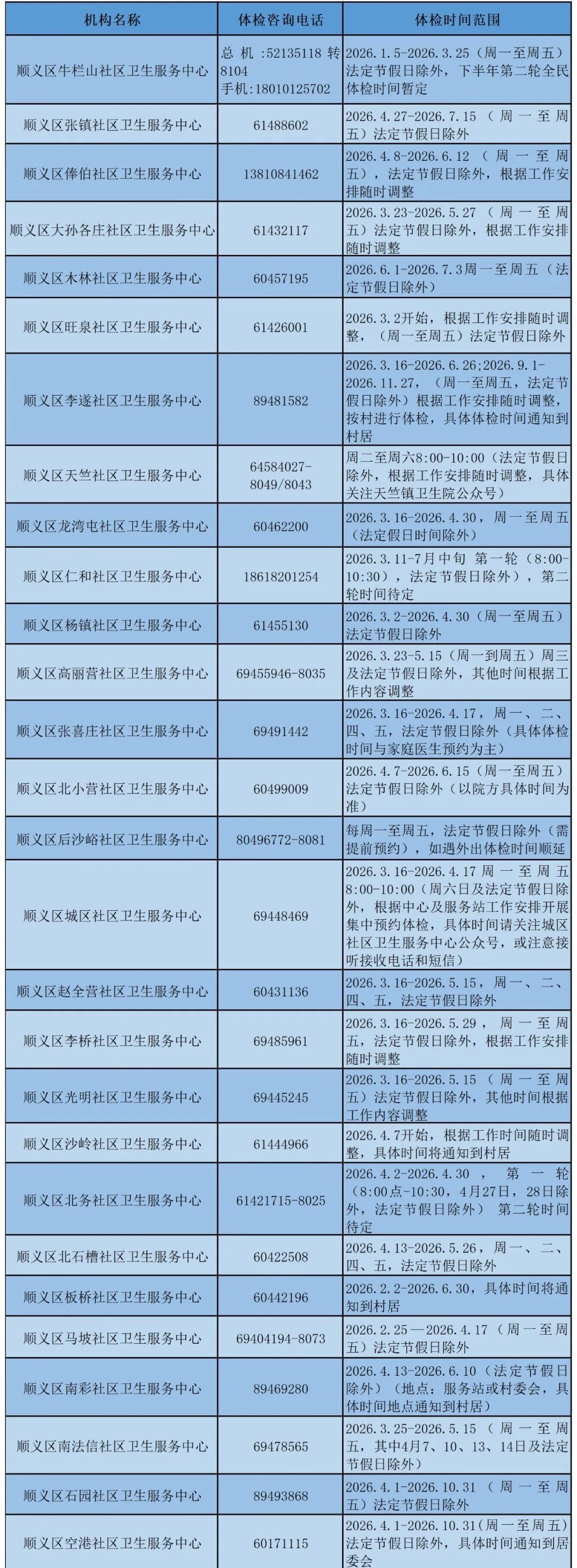 (注:各中心具体服务时间可能略有调整,建议提前致电确认。)