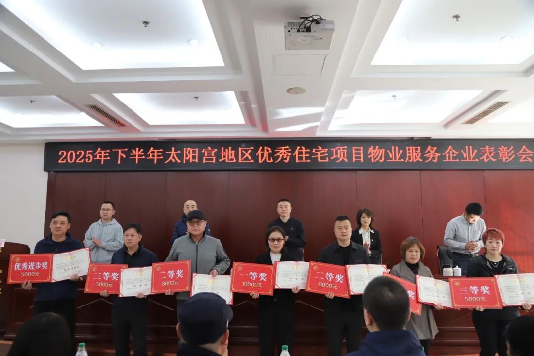 会上,宣读了2025年下半年太阳宫地区住宅项目物业服务评优结果,并由与会领导为获奖企业颁发荣誉证书及奖金。