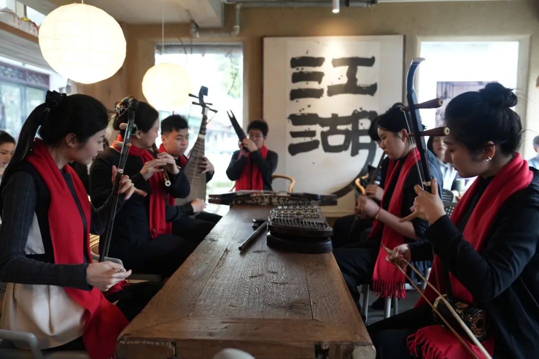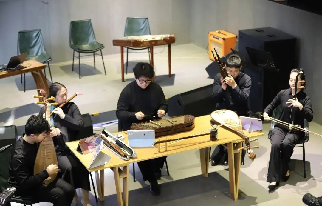 表演场景复原是实践环节的一大亮点。2019年,团队举办专场音乐会,首次采用茶楼围桌的传统雅集形式,邀请乐师轮换座位即兴演奏,还原了江南丝竹“围桌而坐、以乐会友”的原生形态,引发广泛关注。