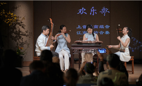她认为,音乐学院与民间乐社并非彼此割裂,而是共生共融于江南丝竹的文化生态之中,各自承担着重要使命。“音乐学院参与活态传统的传承,本身便是音乐教育的重要目标。”院社深度合作,成为活态传承的重要支撑。民间乐社代表、上海海事大学国际教育学院讲师丁怡骏认为,江南丝竹的即兴特质与音色演变,均体现出演奏者对声音品质的极致追求,民间与学院的携手合作,能够更好地激活这一“活传统”。复古音乐虽非绝对意义上的“复原古貌”,却能吸引当代听众、留存历史文脉,具备重要的文化价值。他同时期望,通过教育推广与文化交流活动,将江南丝竹推介给国际受众,让传统音乐走向更广阔的世界舞台。
