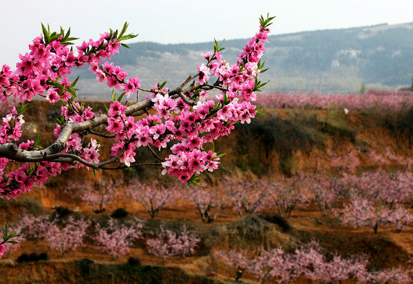 连绵起伏的花海,宛如绯红的朝霞铺展在大地母亲的怀抱中。这里的桃花,色彩艳丽却又不失端庄,淡雅之中透露出深邃的韵味,被赞誉为赏花界的极品之作。