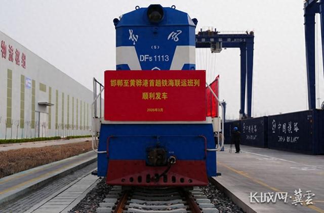 3月30日下午,一列满载集装箱的货物列车从邯郸市邯郸国际陆港专用线驶出,开往黄骅港渤海西站,标志着邯郸至黄骅港首趟铁海联运班列顺利开行。