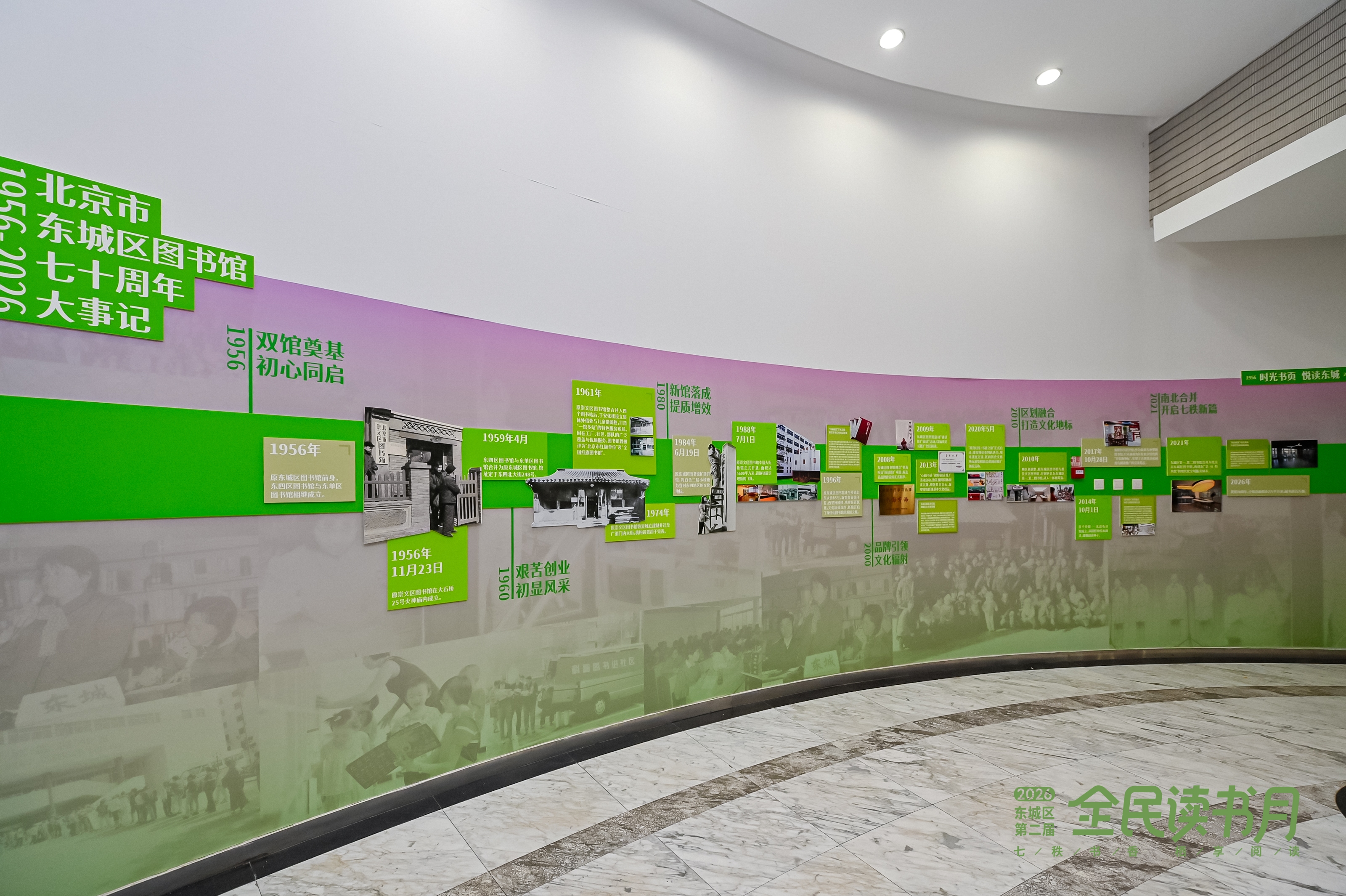 七秩书香,史韵流芳,文脉绵长,阅启新章。今年恰逢东城区图书馆建馆70周年。为此,本届读书月特别策划了“时光书页·悦读东城”馆史展览,展期持续至4月30日。展览通过珍贵的老照片、历史文献及流转典籍,系统梳理了图书馆70年的建设脉络,全景展现了东城公共文化服务的时代变迁。从昔日的借阅柜台到如今的智慧空间,展览细腻诠释了“70年,书香连接你我”的深层意涵,彰显了图书馆作为城市“精神灯塔”与“文化枢纽”的独特价值。现场,由青年艺术家创作的猫咪看书卡通墙画也成为备受年轻人喜爱的打卡点,寓意阅读文化的代际传承与新生。