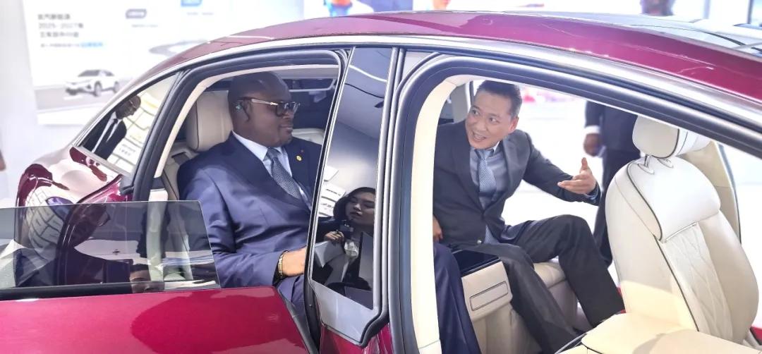 在技术展厅,代表团成员了解了新能源汽车发展历程和技术革新,争相体验了极狐品牌家用车。加蓬国民议会第二副议长卡力马表示:“我很喜欢收集车,希望两年后无人驾驶汽车量产后,再来参观体验。”