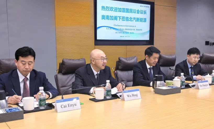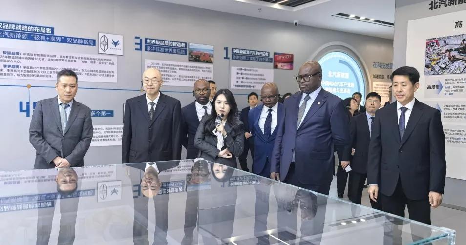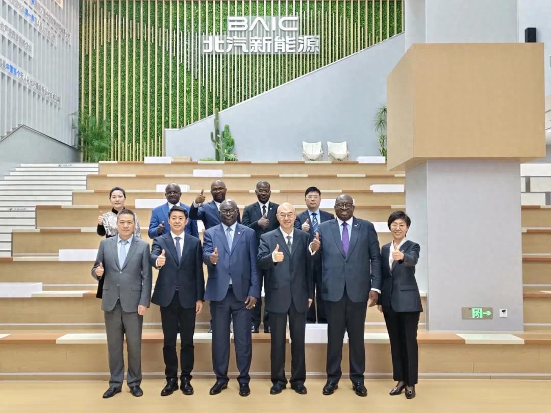 座谈中,北汽新能源、北汽福田、北汽国际等企业热情介绍产品特色和国际发展布局、对非合作前景,并与代表团就如何进一步推动绿色产业、新能源汽车在加蓬落地合作进行了深入交流。