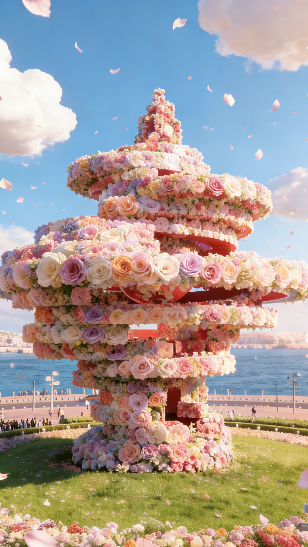 花瓣飘向大海,