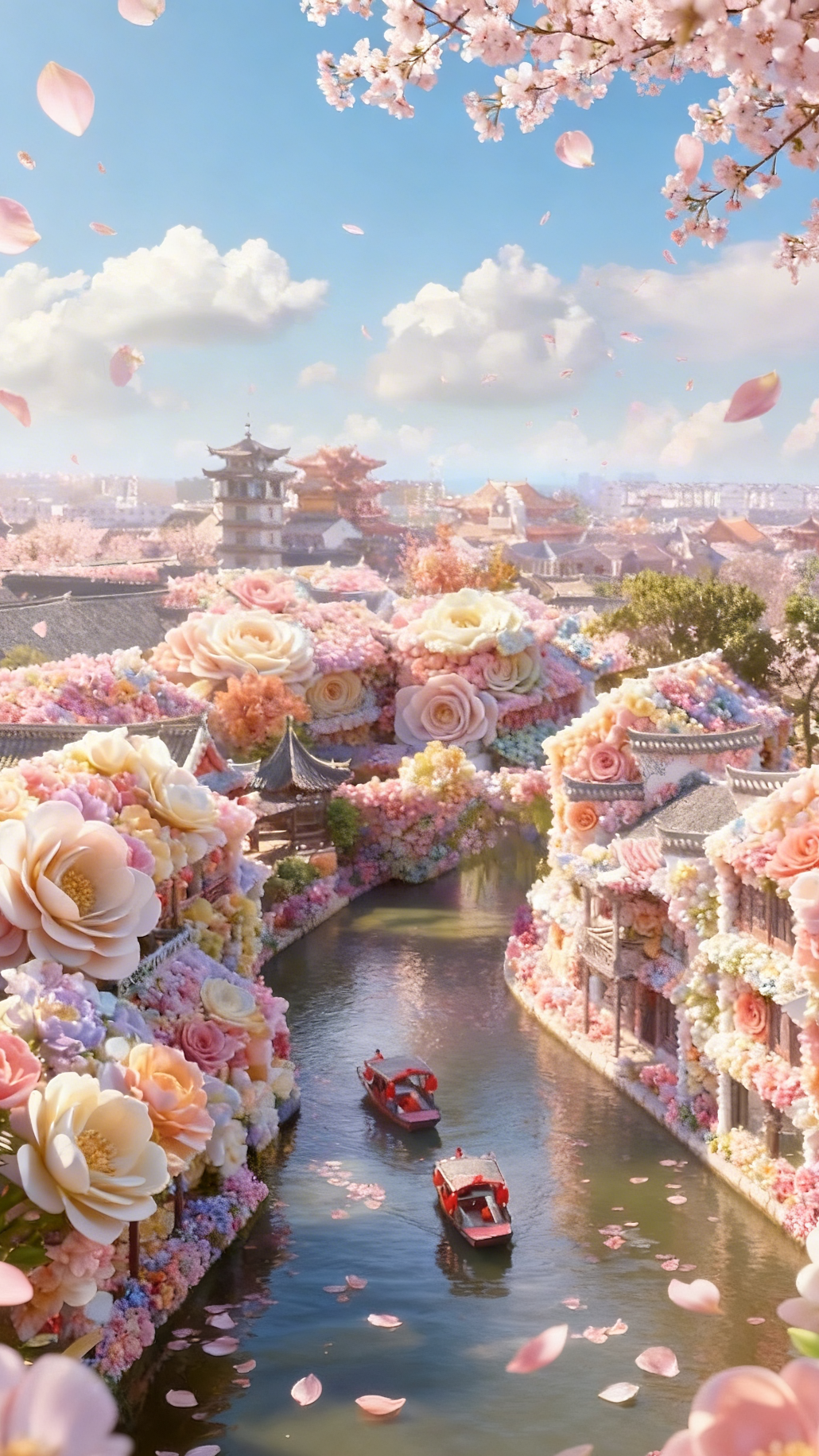 船娘的歌声里飘着花瓣。