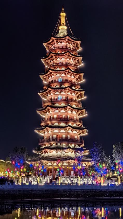 东昌湖水倒映着花楼倩影,