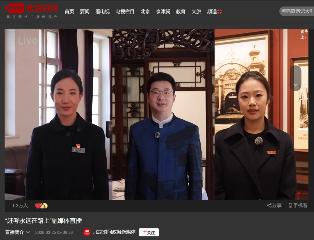 3月25日上午,香山革命纪念馆联合清华园车站旧址、颐和园益寿堂、中共中央香山驻地旧址(双清别墅)共同举办“赶考永远在路上”融媒体直播活动。活动累计观看量突破678.7万人次。