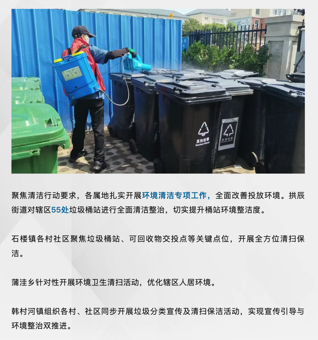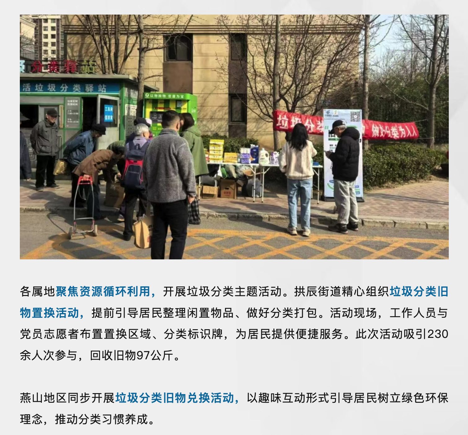 近期,房山区各乡镇街道紧扣规范、清洁、便民、宣传等核心任务,因地制宜开展形式多样的垃圾分类专项行动,以“小活动”撬动“大环保”,用“实举措”筑牢“硬基础”,持续提升辖区垃圾分类精细化管理水平。(来源:房山区城市管理委)