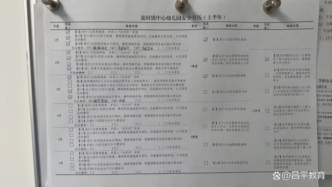 幼儿园为提升安全管理规范化、精细化水平,紧扣教委安全工作“规定动作”“重点任务”清单,结合园所实际,创新制定安全工作月历,以图表化、清单化、闭环式管理推动安全工作落地落细。