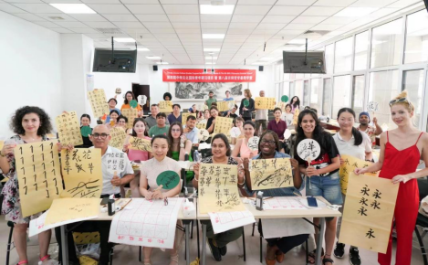 蔡沁彤(右二)与全球22个国家和地区的青年学者参加中华文化国际青年研习项目